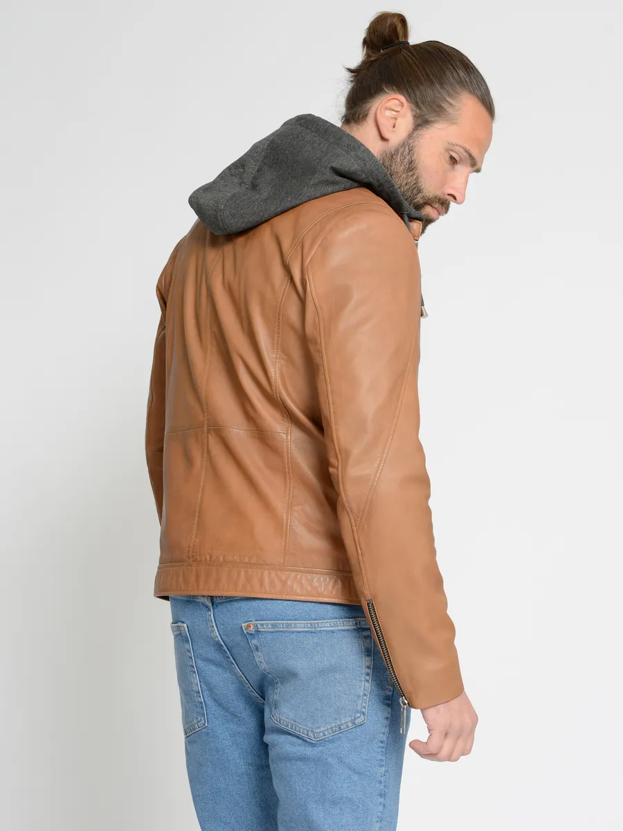 Подкладка: легкая подкладкаСтрана-производитель: ИндияВоротник/вырез: воротник-стойка. Материал подкладки: 100% полиэстер. Материал капюшона: 52% хлопок; 48% полиэстерМатериал внешней ткани: 100% кожа ягненкаМатериал набивки: нетМатериал подкладки рукавов: 100% полиэстерСвойства материала: кожаСостав материала: Внешний материал: 100% кожа ягненка / Внутренняя подкладка: 100% полиэстер / Подкладка рукавов: 100% полиэстер / Капюшон: 52% хлопок ; 48% полиэстерРазмер модели: 1,85 м. Детали верха: не указаноПосадка: Обычная посадкаТип/стиль изделия: Кожаная курткаСпециальные размерыУровень изделия: не указаноТип застежки: прямая молния