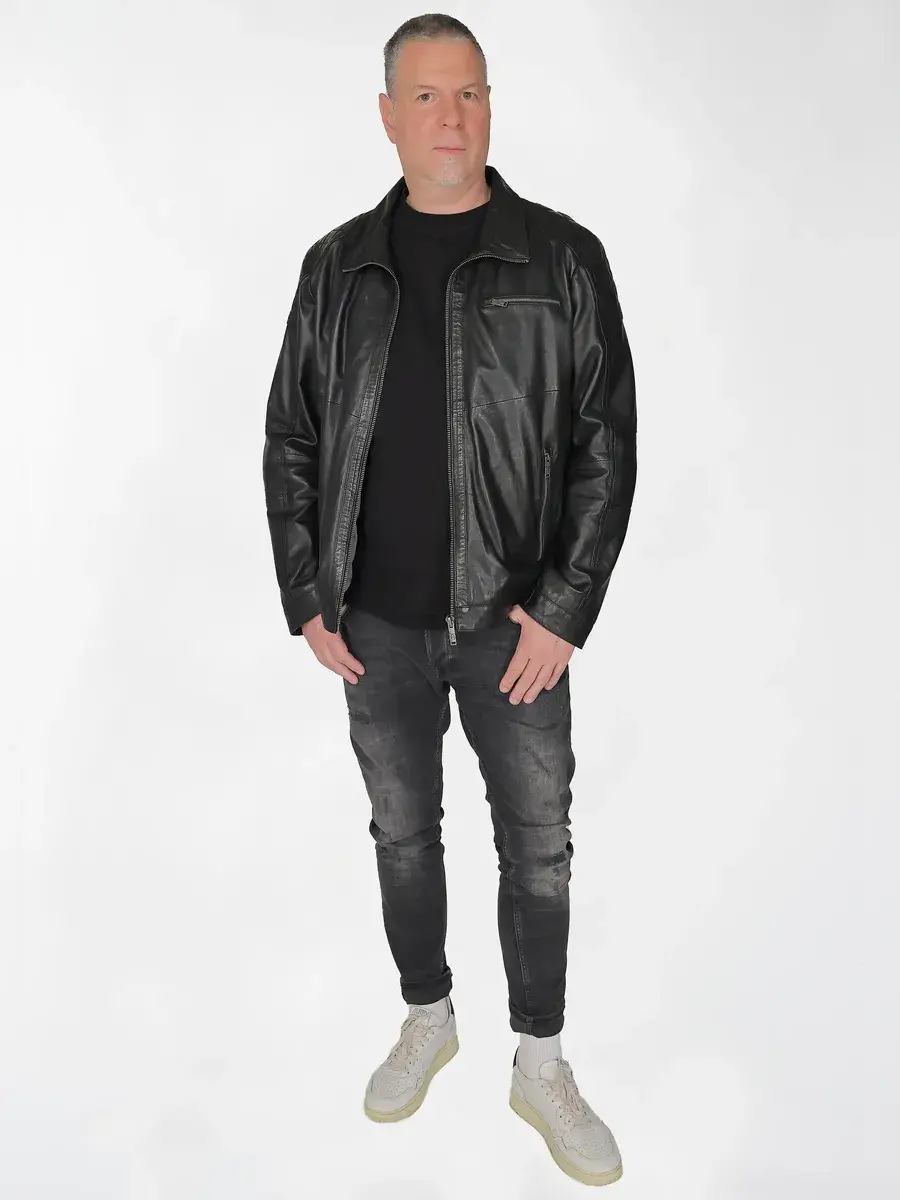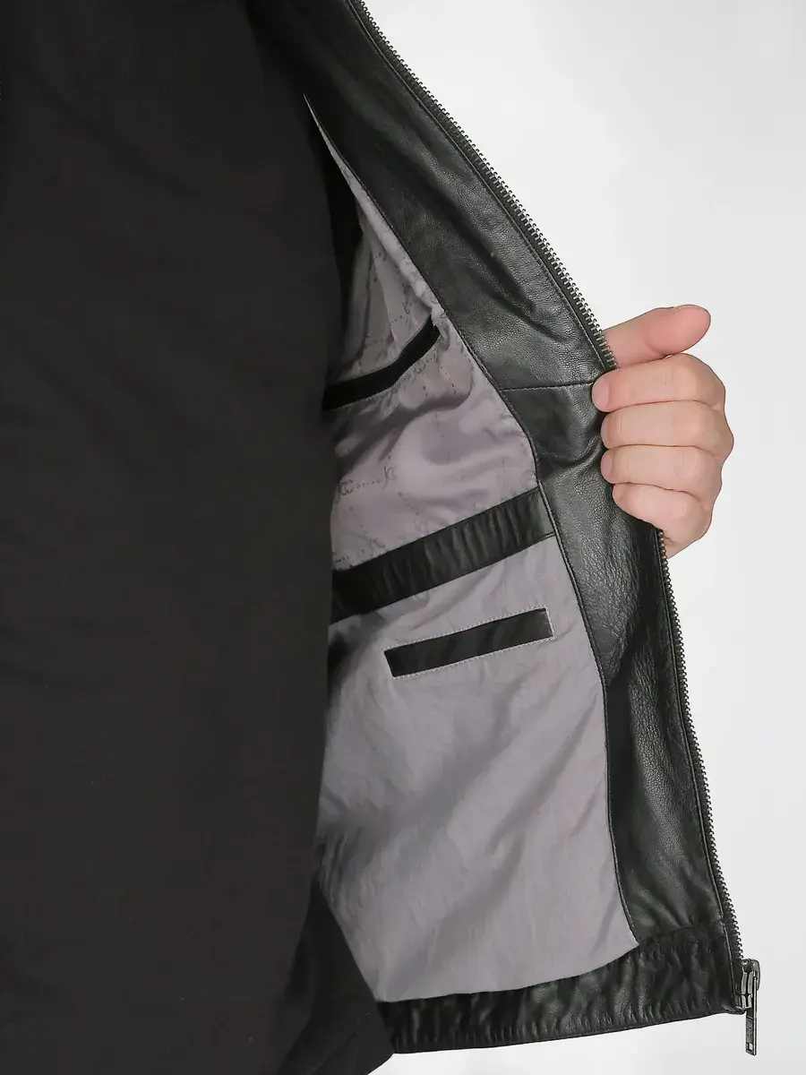 Подкладка: легкая подкладкаСтрана-производитель: ИндияКоллекция: Осень/Зима 22Форма воротника: воротник-стойкаСостав материала: Верхняя ткань: 100% овечья кожа / Верхняя подкладка: 100% полиэстер / Нижняя подкладка: 100% хлопок / Подкладка рукавов: 100% полиэстерДлина: обычнаяВнешняя часть Материал ткани: 100% овечья кожа. Материал подкладки рукавов: 100% полиэстер. Примечание к материалу: Содержит нетекстильные части животного происхождения. Рисунок: однотонный. Посадка: оверсайз. Инструкции по уходу: специальная чистка кожи. Тип/стиль изделия: кожаная куртка. Тип застежки: молния. Подкладка: нет/не актуально. Целевая группа: мужчины. Рукав. длина: длинный рукав