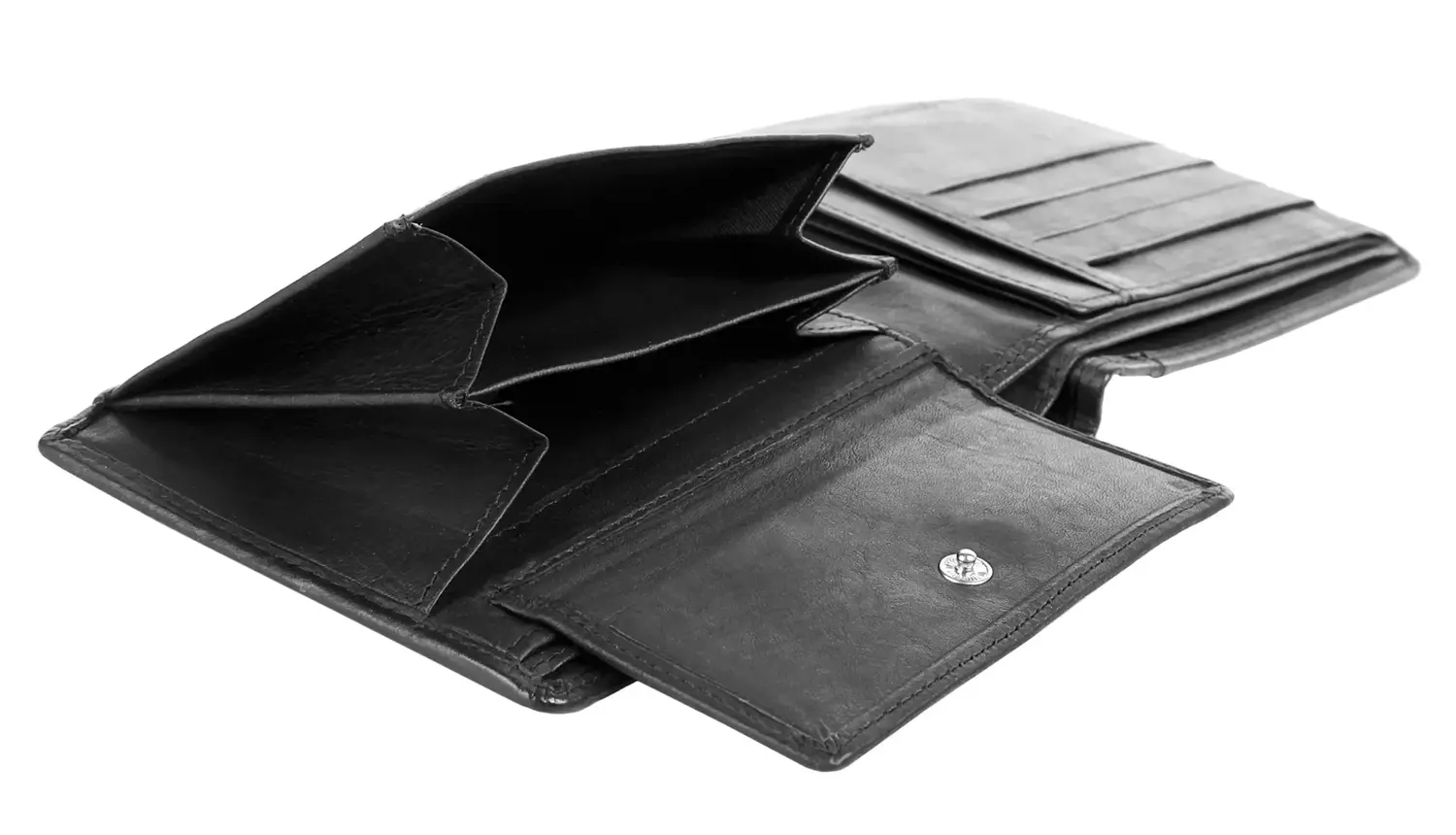 Тонкий и практичный! Этот незаметный кожаный кошелек от Bodenschatz стоит того, чтобы присмотреться к нему еще раз. Альбомный формат предлагает место для хранения всего важного, не занимая при этом много места в сумке. Монеты, купюры и карты у вас всегда с собой.* 100% воловья кожа* Открывается дважды* 1 отделение для монет с кнопкой* 2 отделения для купюр * 3 внутренних кармана* 8 отделений для карт * 1 внешний карман* классический дизайнОсобенности: натуральная кожаНазвание Дополнение: натуральная кожаШирина: 13 смВес: 100Высота: 10 смГлубина: 3 смКоличество внешних карманов: 1Количество внутренних карманов: 3Количество отделений для карточек: 8Количество кармашков для купюр: 2Внешний материал: 100% воловья кожаРазмер: onesizeОсновная застежка: Без застежкиВнутренний цвет: черныйВнутренний материал : СинтетическийВес: 100 гОтделение для монет: есть (кнопка)Вид поверхности: обработанная, полуглянцевая Объем: 0,1 Формат: альбомный
