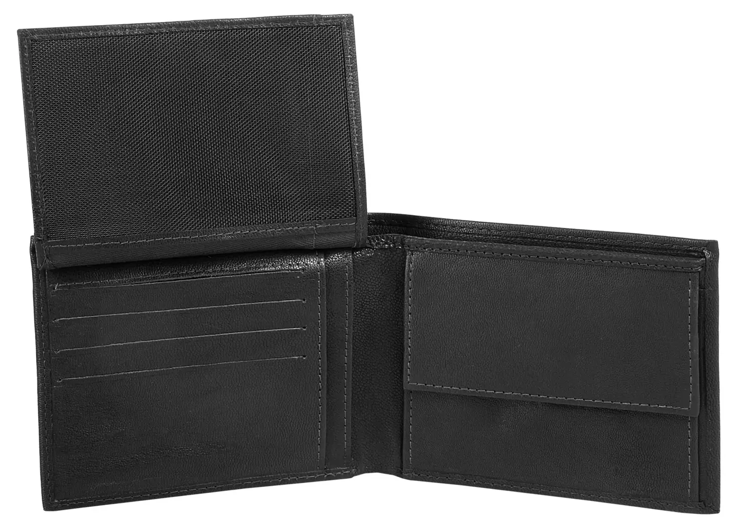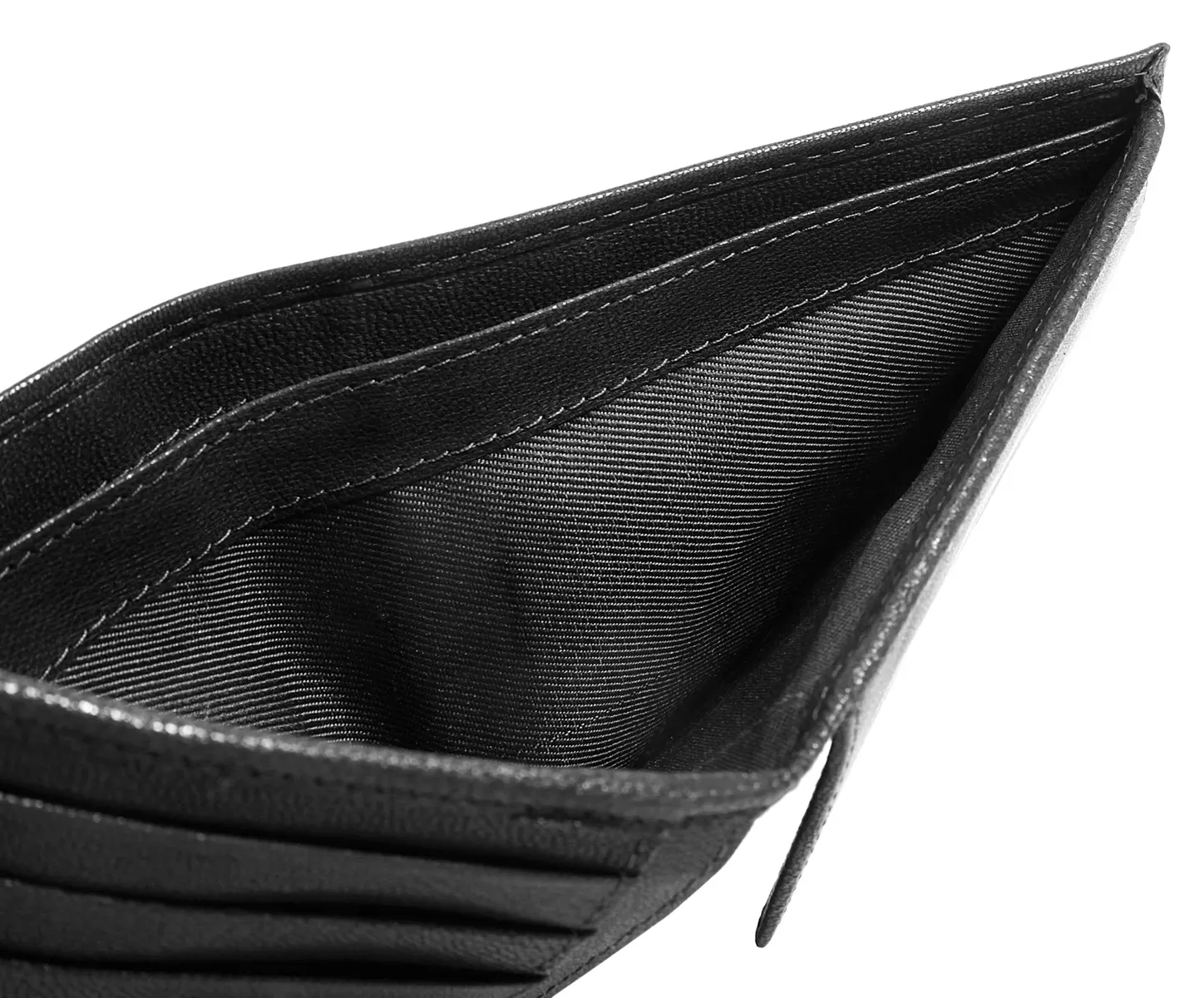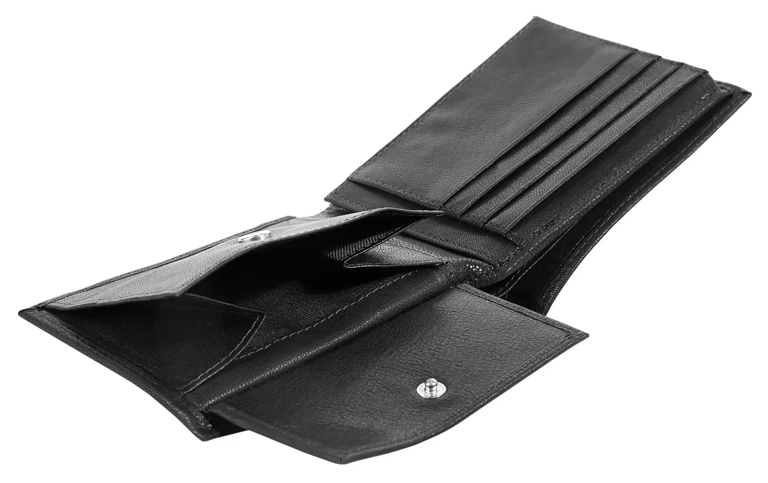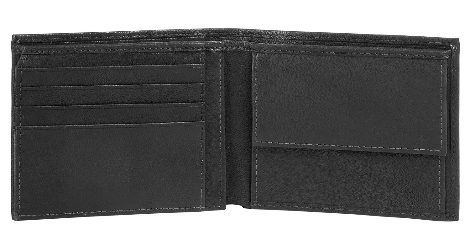 Различные отделения для купюр, карт и монет.