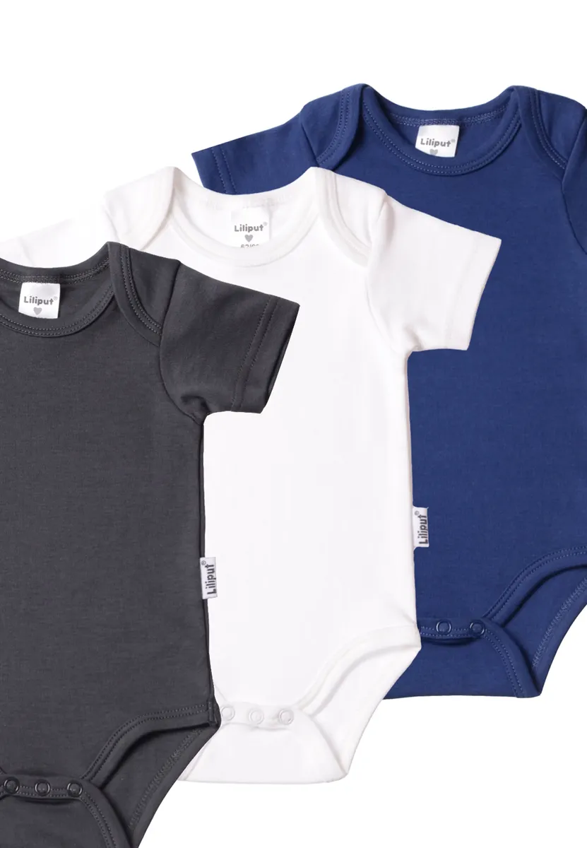 Откройте для себя замечательную тройку боди с короткими рукавами из высококачественного органического хлопка в неподвластных времени цветах: антрацитовом, темно-синем и белом от Liliput! В этом наборе вы найдете три универсальных боди, которые не только практичны, но и изготовлены с учетом экологических требований. Боди с короткими рукавами изготовлены из мягкого и приятного для кожи органического хлопка, который обеспечивает комфорт вашему ребенку. Дизайн с короткими рукавами делает эти боди идеальными для теплых дней, а также дает возможность комбинировать их с другой одеждой. Цвета: темно-серый, темно-синий и белый — классические и вневременные, что делает эти боди подходящими для любого случая и с разными нарядами. Будь то уютная одежда для дома или практичное нижнее белье среди других предметов одежды, эти боди станут незаменимой базой гардероба вашего ребенка. Благодаря высокому качеству изготовления и кнопкам в области промежности боди легко надеваются и обеспечивают оптимальную посадку.