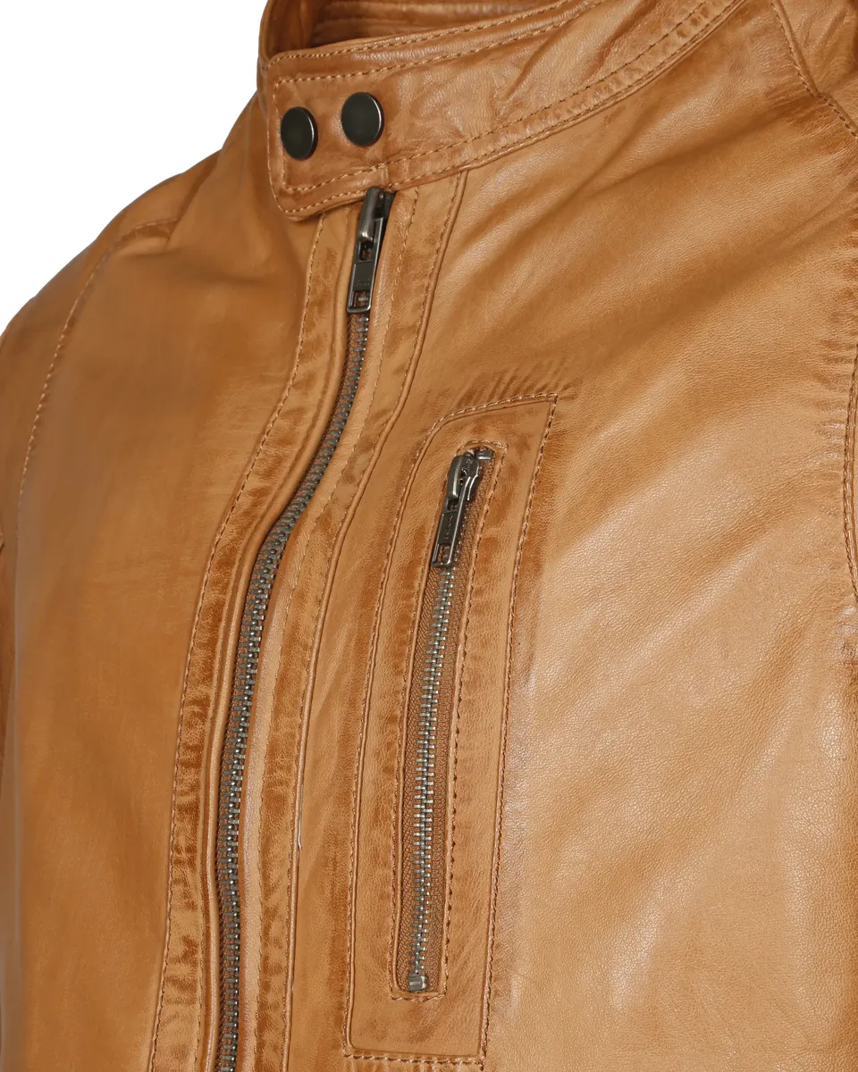 Состав материала: Внешний материал: 100% кожа ягненка / Внутренняя подкладка: 100% хлопок / Подкладка рукавов: 100% полиэстер Подкладка: легкая подкладка Страна происхождения: Пакистан Форма воротника: воротник-стойкаМатериал подкладки: 100% хлопокМатериал внешнего материала: 100% кожа ягненкаМатериал подкладка рукавов: 100% полиэстерУзор: однотонныйПосадка: стандартнаяИнструкция по уходу: специальная чистка кожиТип/стиль изделия: кожаная курткаТип застежки: прямая молнияЦелевая группа: мужчиныДлина рукава: длинный рукав