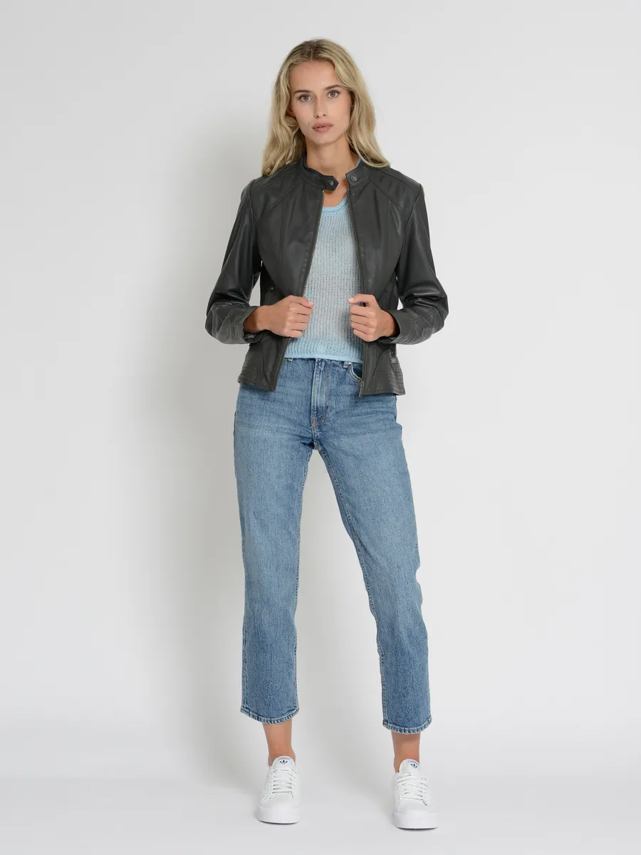 Состав материала: Внешний материал: 100% кожа ягненка / Внутренняя подкладка: 100% хлопок / Подкладка рукавов: 100% полиэстер Подкладка: легкая подкладка Страна-производитель: ИндияВоротник/вырез: воротник-стойкаМатериал подкладки: 100% хлопокМатериал внешней ткани: 100% ягненок кожаМатериал подкладки рукавов: 100% полиэстерСвойства материала: кожаРазмер модели: 1, размер 79м. Подходит: стандартная посадка. Тип/стиль изделия: кожаная куртка. Тип застежки: молния.