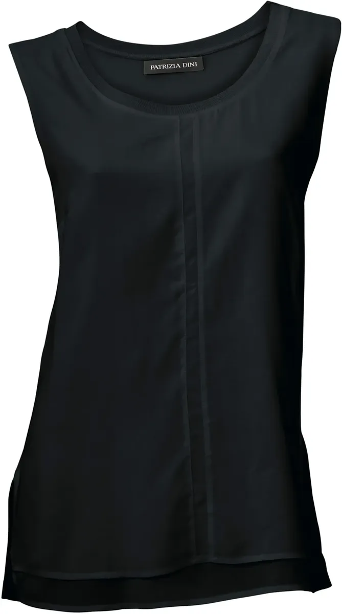 Топ-рубашка Эффектный многослойный вид: сверху легкий трикотаж, снизу струящаяся ткань. Обнимание фигуры. Длина около 64 см. 95% вискоза, 5% эластан. Тканый материал: 100% вискоза. Машинная стирка.