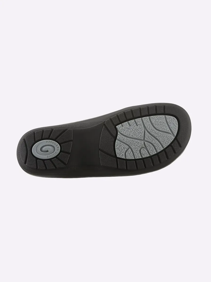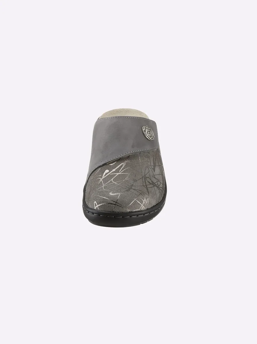 Мюли Belvida имеют привлекательный металлический вид. Материал верха – замша и гладкая кожа, внутренняя подкладка – кожа, съемная пробковая стелька. регулируемая застежка-липучка с декоративной кнопкой. Легкий как перышко. Нескользящая подошва из полиуретана с каблуком около 30 мм. Ширина H для сильных ног.