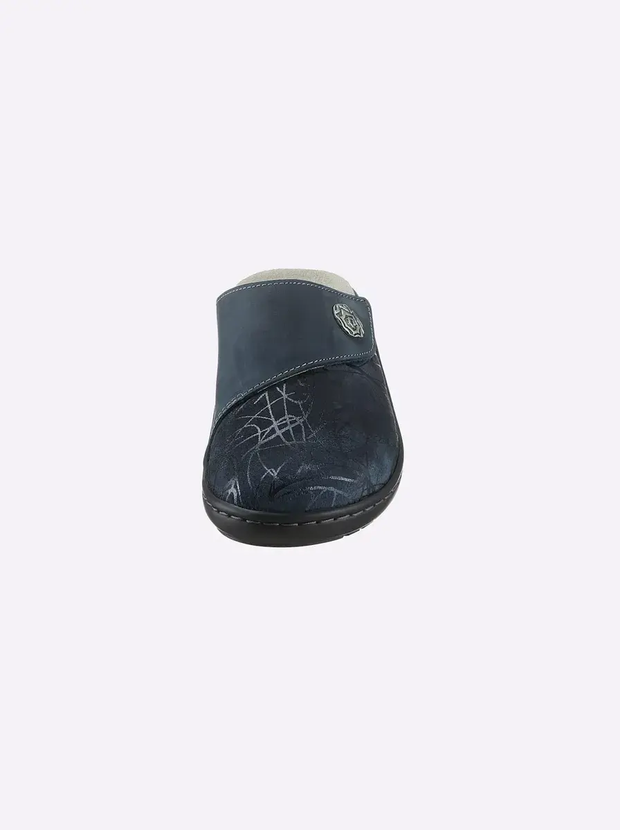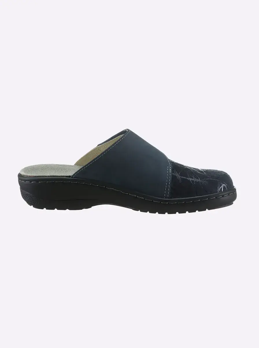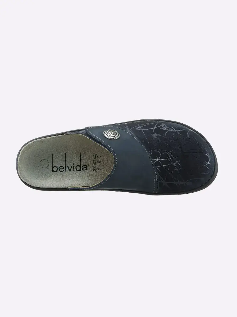 Мюли Belvida имеют привлекательный металлический вид. Материал верха – замша и гладкая кожа, внутренняя подкладка – кожа, съемная пробковая стелька. регулируемая застежка-липучка с декоративной кнопкой. Легкий как перышко. Нескользящая подошва из полиуретана с каблуком около 30 мм. Ширина H для сильных ног.