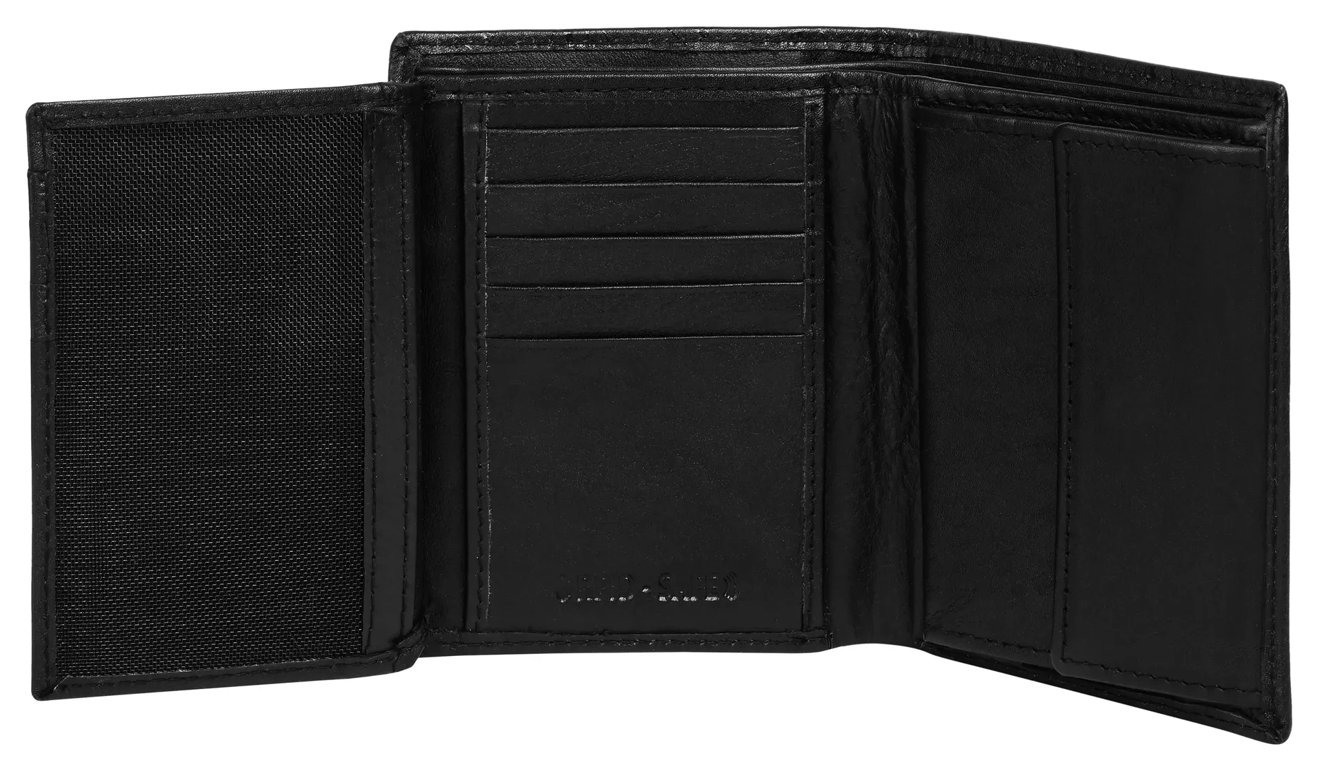 Тот, кто ценит проверенный дизайн, продуманные отделения и повышенную безопасность, нашел подходящий аксессуар в кожаном кошельке от bruno Banani. Здесь можно удобно и защищенно хранить карты, наличные и многое другое — это обеспечивается широким выбором карманов для карт, дисплеев и накладных карманов, а также отделений для банкнот и отделения для монет. Защита RFID предотвращает несанкционированное считывание данных вашей личной карты.* 100% воловья кожа* 1 отделение для монет с застежкой на кнопку* 2 отделения для купюр* 10 отделений для карт* 3 накладных кармана* 1 видимое отделение* складывается вдвое* Защита RFID от несанкционированного доступа посредством сканирования * Принт с логотипом по всей поверхности * Особенно легкийОсобенности: натуральная кожаДополнение к названию: натуральная кожаШирина: 10 смВес: 100Высота: 12 смГлубина: 2 смКоличество внутренних карманов: 3Количество отделений для карт: 10Количество отделений для купюр: 2Количество видимых карманов: 1Внешний материал: 100% коровья кожаРазмер: onesizeОсновная застежка: Без застежкиЦвет внутри: черныйМатериал внутри: Кожа Внешний вид салона: в тонВес: 0,1 кг Отделение для монет: есть (кнопка)Вид поверхности: однотонный - шелковисто-блестящийОбъем: 0,1Формат: портретный формат