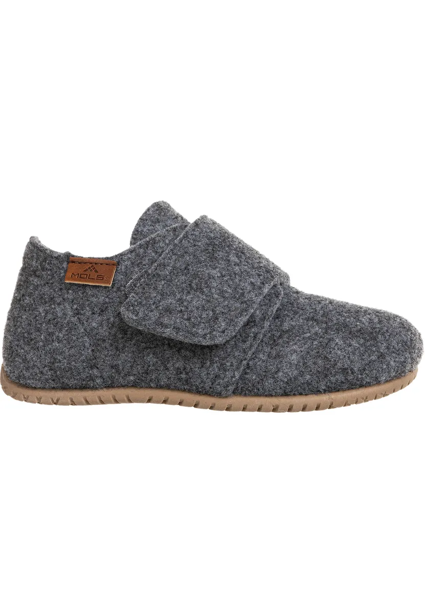 С тапочками для детей «Heiris Kids Felt Slipper» от компании MOLS из Дании вы получите удобные тапочки для уютных часов дома. Полиэфирный материал с эффектом фетра теплый, мягкий и прочный. Широкий ремешок на липучке обеспечивает хорошую фиксацию обуви. Нескользящая подошва из TPR обеспечивает хороший шаг и хорошо катится при ходьбе. Закрытые тапочки для детей "Heiris Kids Felt Slipper" от MOLS приглашают вас на уютный вечер дома.