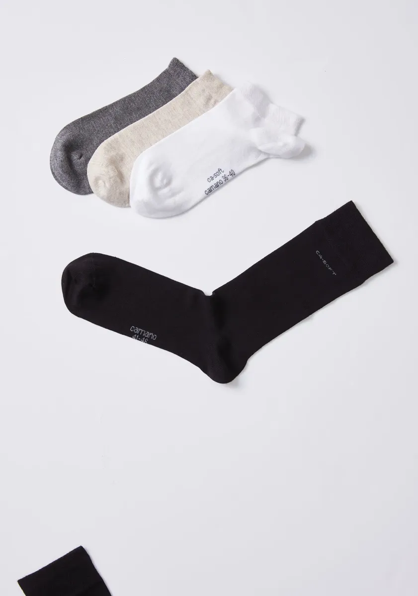 С унисексными носками Ca-Soft Bamboo Socks в практичной упаковке по 4 штуки от Camano вы теперь можете сочетать максимальный комфорт и экологичную моду. Носки не только стильные, но и впечатляют своими выдающимися свойствами. Мягкая манжета из пике без сжатия обеспечивает удобную посадку, а мягкое и охлаждающее бамбуковое волокно обеспечивает комфорт в течение всего дня. Усиленная пятка и носок обеспечивают большую прочность и делают эти носки долгим спутником. Для дополнительного комфорта швы на пальцах ног соединены вручную, что сводит к минимуму точки трения и давления. И все это без какого-либо сжатия, чтобы вы могли наслаждаться днем ​​в полной мере. Продемонстрируйте стиль и сосредоточьтесь на экологичности с помощью унисекс носков Ca-Soft Bamboo от Camano. Будь то в офисе, во время занятий спортом или в свободное время – эти носки станут идеальным выбором на любой случай. Побалуйте свои ноги наилучшим образом и испытайте новый стандарт комфорта. Случай: повседневный. Обработка пояса: пояс без резинового принта. Этикетка с указаниями по уходу: 30°, деликатный цикл - нельзя гладить - нельзя сушить в стиральной машине - не подвергать химической чистке - не отбеливатьСезон: круглый год круглаяСжатие: нетУпаковка: 4 шт. Высота голенища: до икры Тип носка: носкиПрозрачность: непрозрачный Этикетка с указаниями по уходу - отбеливатель: не отбеливать Этикетка с указаниями по уходу - гладить: не гладить Этикетка с указаниями по уходу - чистка: не подвергать химической чистке Этикетка с указаниями по уходу - сушить: нельзя сушить в стиральной машине Этикетка с указаниями по уходу - стирать : щадящий цикл 30°. Состав: Внешний материал: 80% вискоза, 19% полиамид, 1% эластан.