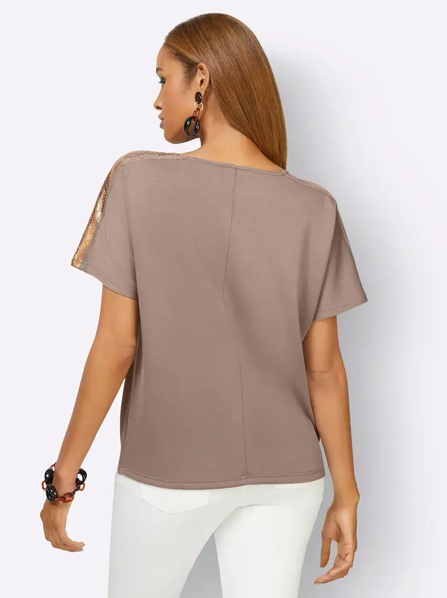 Эта толстовка повседневного кроя идеально подойдет для вашего следующего торжественного выхода. Элегантное и мягкое изделие с модальным наполнением имеет шелковисто-матовый блеск, привлекательный вырез в виде водопада, а небрежный вырез на плечах украшен вставкой с принтом, украшенной блестящей пряжей. 50% модал, 44% полиэстер, 6% эластан. Машинная стирка.