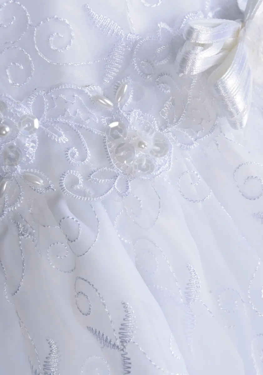 Состав материала: Внешний материал: 100% полиэстер Тип материала: трикотаж Свойства материала: эластичный Инструкция по уходу: машинная стирка Внешний вид/Стиль Стиль: праздничный Подогнать/обрезать Вырез: круглый. Рукава: без рукавов. Цвет: белый
