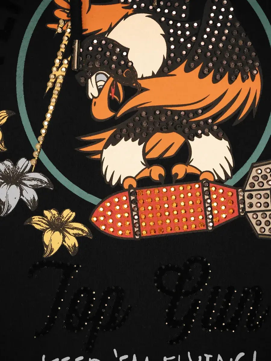 Эта толстовка представляет собой идеальное сочетание комфорта и гламура. Изготовленная из высококачественных материалов, она создает ощущение мягкости и комфорта. Привлекательный принт со стразами на груди придает этой толстовке блеск и элегантность. Сверкающие стразы расположены точно и придают дизайну дополнительный объем. Толстовка повседневного кроя и удобной посадки идеально подходит как для повседневной носки, так и для непринужденных мероприятий. Его можно комбинировать по-разному, и он придаст нотку стиля любому наряду.