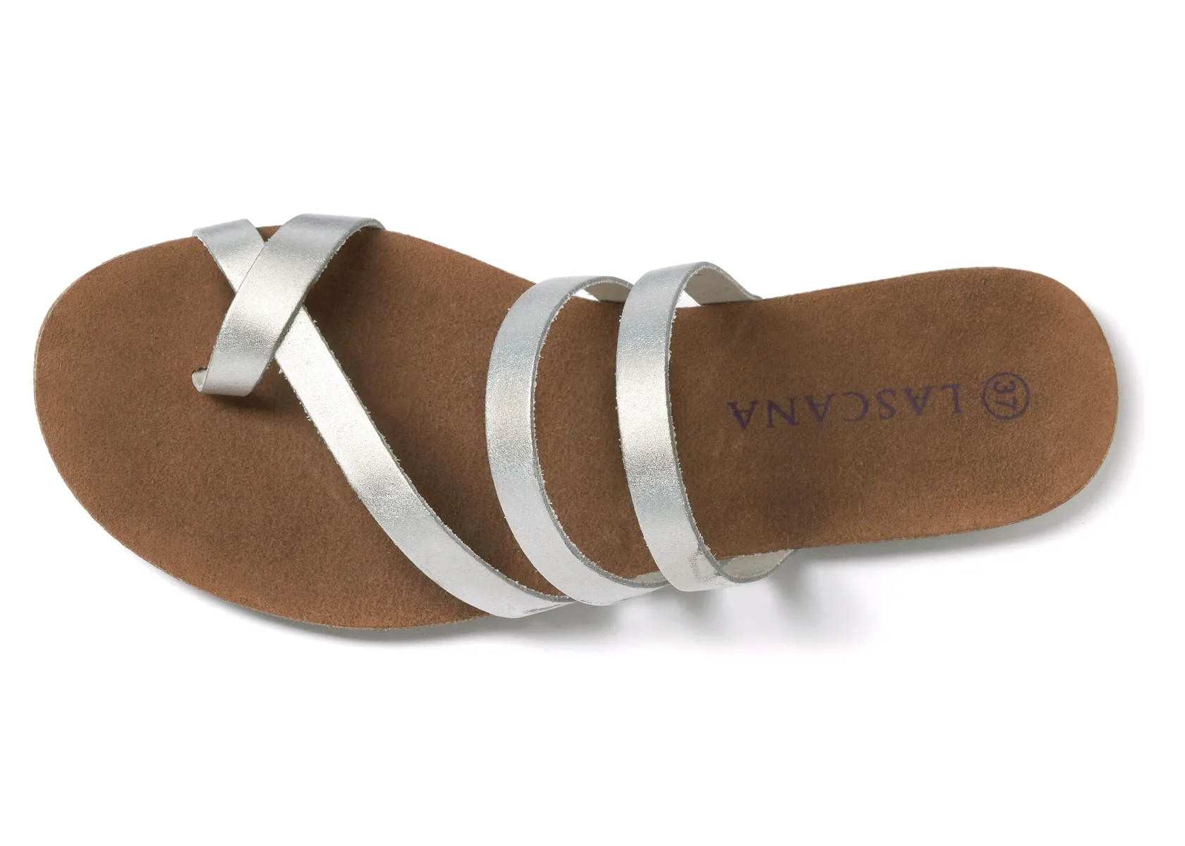 Шлепанцы LASCANA, сандалии, мюли из кожи с эффектом металлик, серебристый