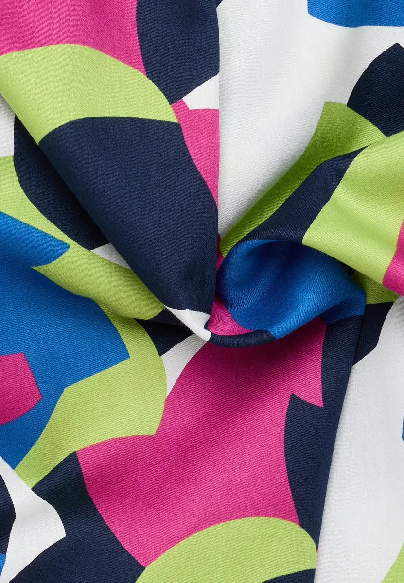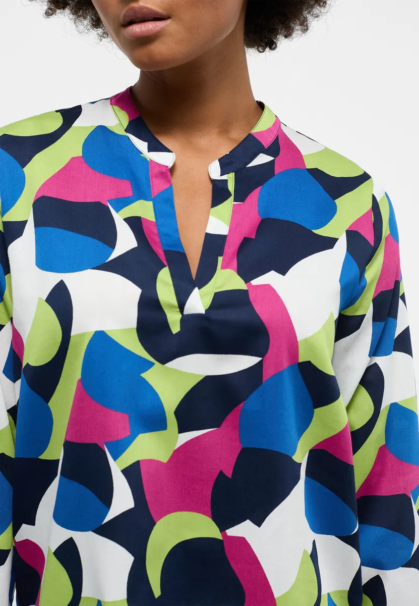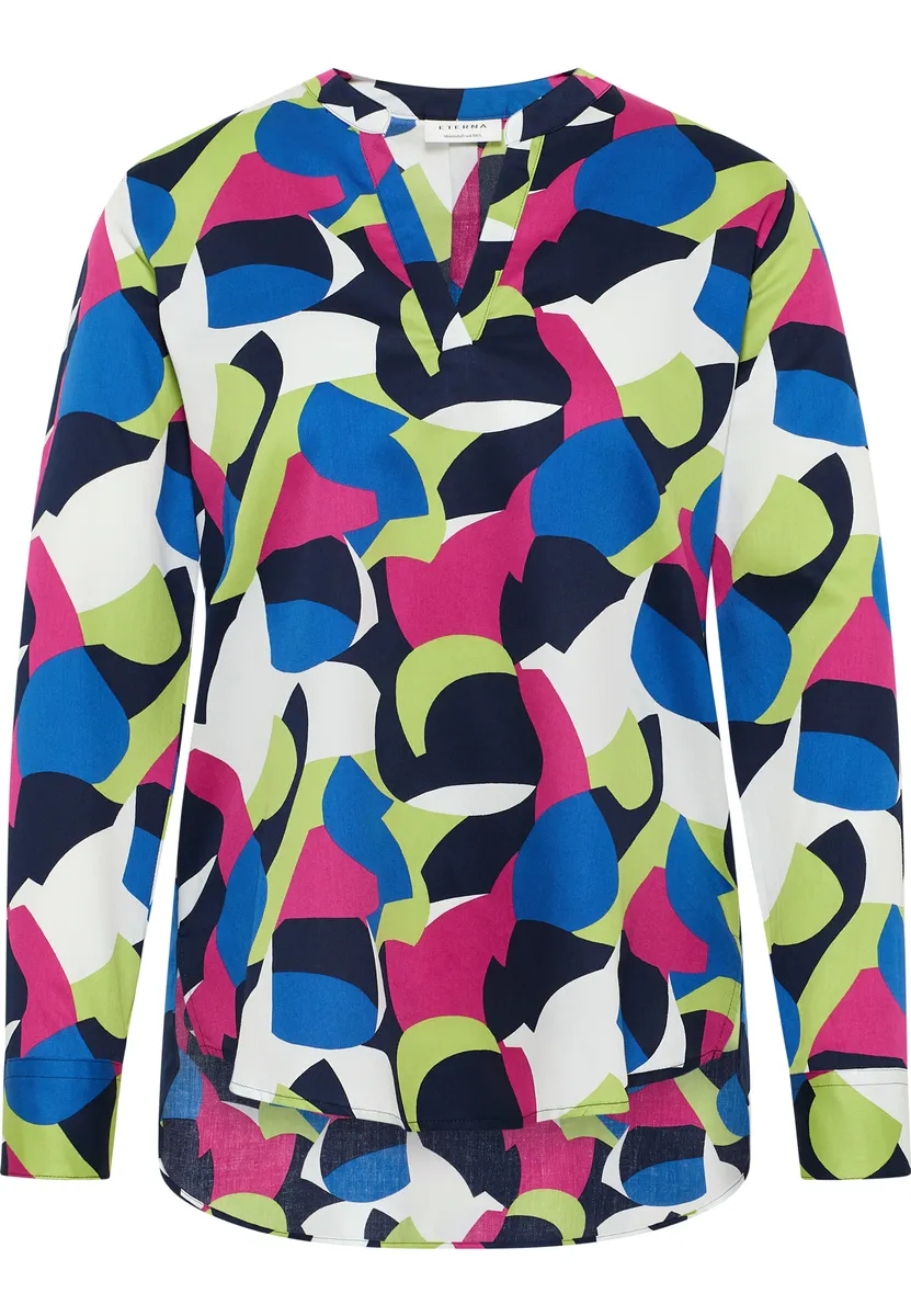 Эта туника с принтом придает модный вид как в повседневном, так и в стильном офисном образе. Гармоничный цветовой дизайн и привлекательный принт привлекают внимание. Особенностью является V-образный вырез с небольшим воротником-стойкой. (атласная ткань) обеспечивает первоклассный комфорт, а тонкий блеск ткани придает элегантность. Для этой туники свободного кроя характерен свободный силуэт. Блузки свободного кроя идеально подойдут женщинам, предпочитающим свободный крой. Эта утонченная туника украсит любой наряд — приобретите ее в интернет-магазине прямо сейчас.