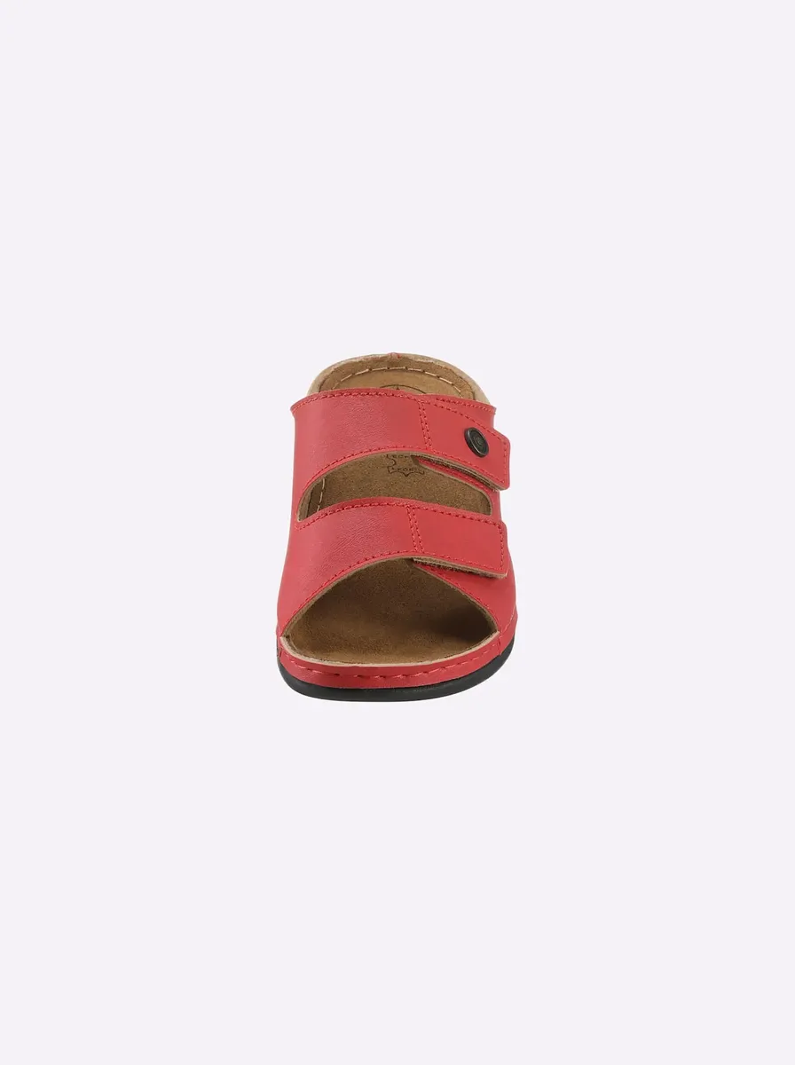 Мюли от Franken-Schuhe с 2 застежками-липучками на подъеме. С амортизацией. Материал верха: искусственная кожа. Подкладка: текстиль. Особенно мягкая кожаная стелька. Синтетическая подошва. Каблук около 40 мм. ширина Х.