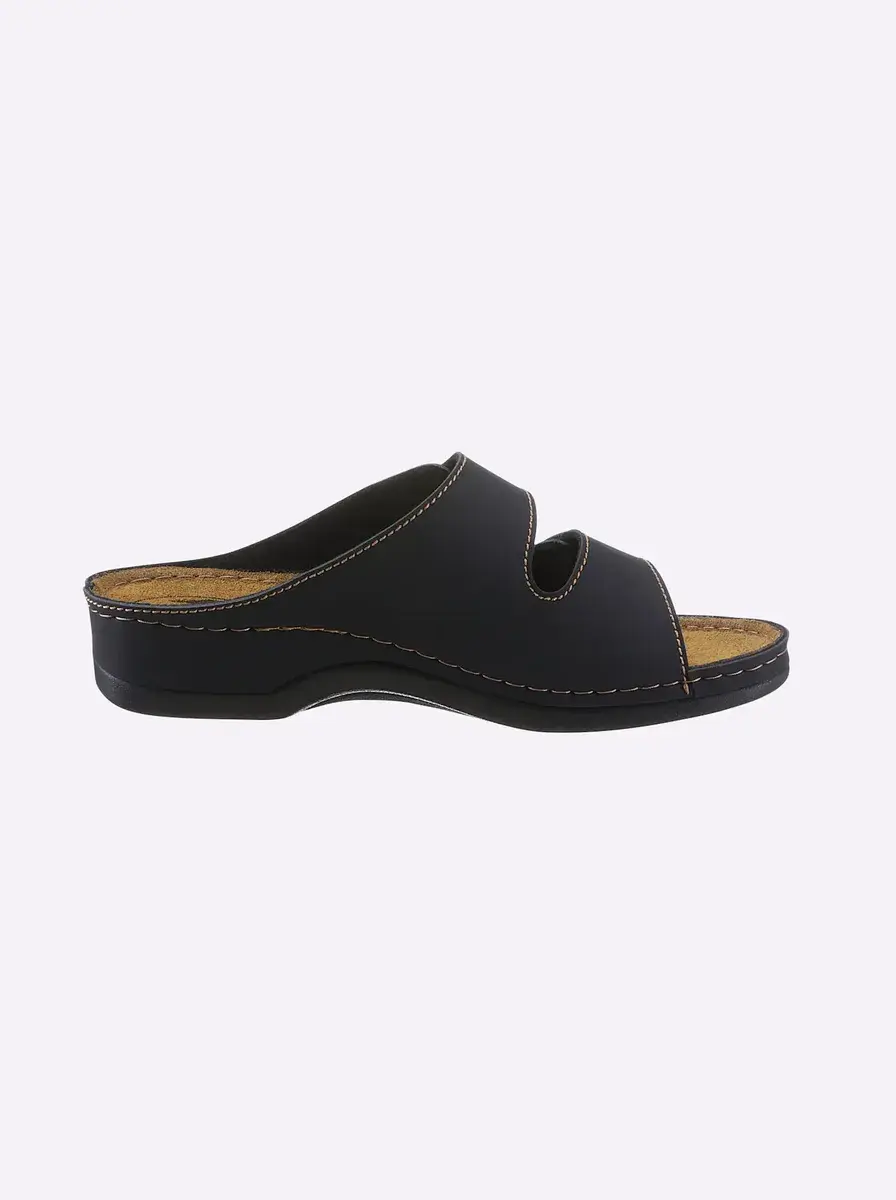 Мюли от Franken-Schuhe с 2 застежками-липучками на подъеме. С амортизацией. Материал верха: искусственная кожа. Подкладка: текстиль. Особенно мягкая кожаная стелька. Синтетическая подошва. Каблук около 40 мм. ширина Х.