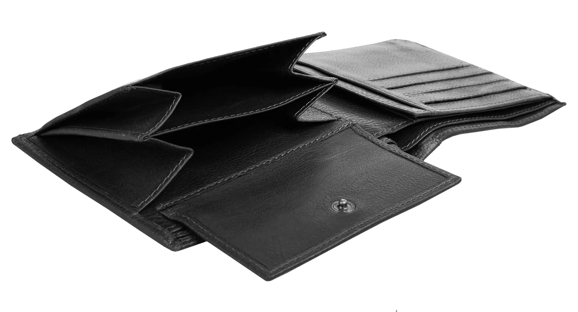 8 отделений для карт, 2 отделения для вкладышей, 2 отделения для купюр и 1 двойное отделение для монет.
