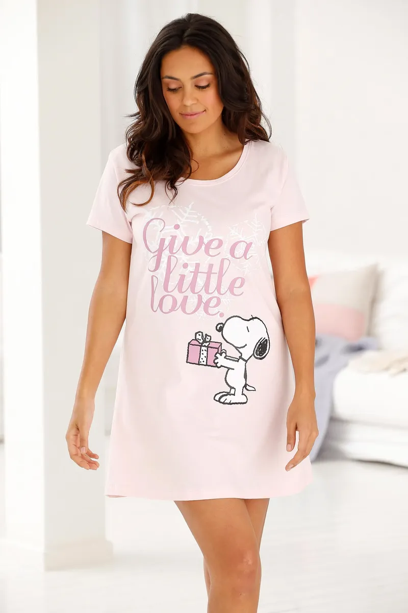 Ночная рубашка Peanuts с принтом Snoopy, длина мини, розовый