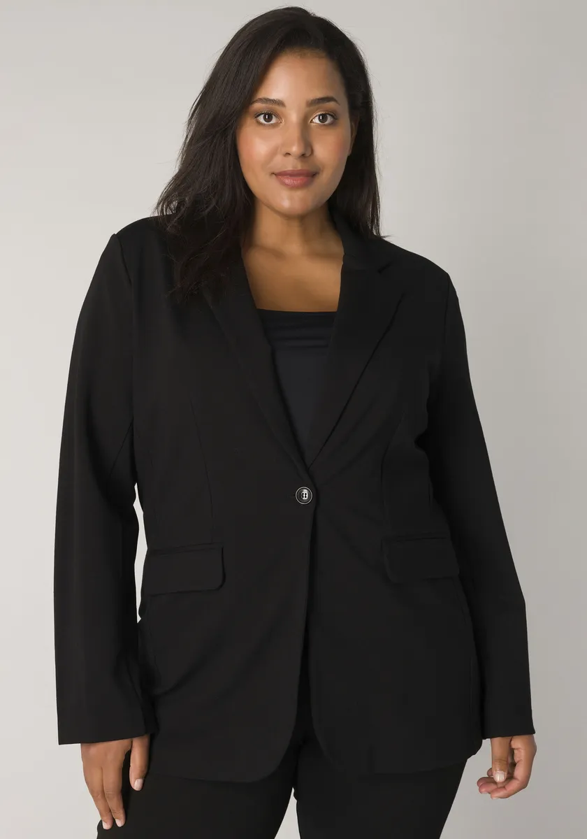 Блейзер из джерси Base Level Curvy с клапанами на карманах, черный