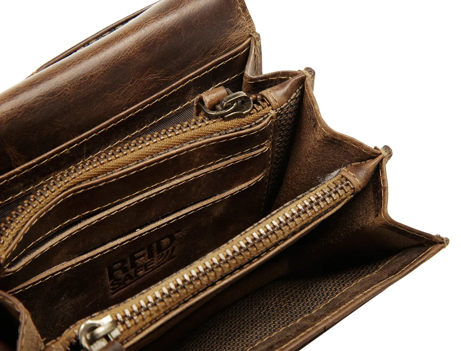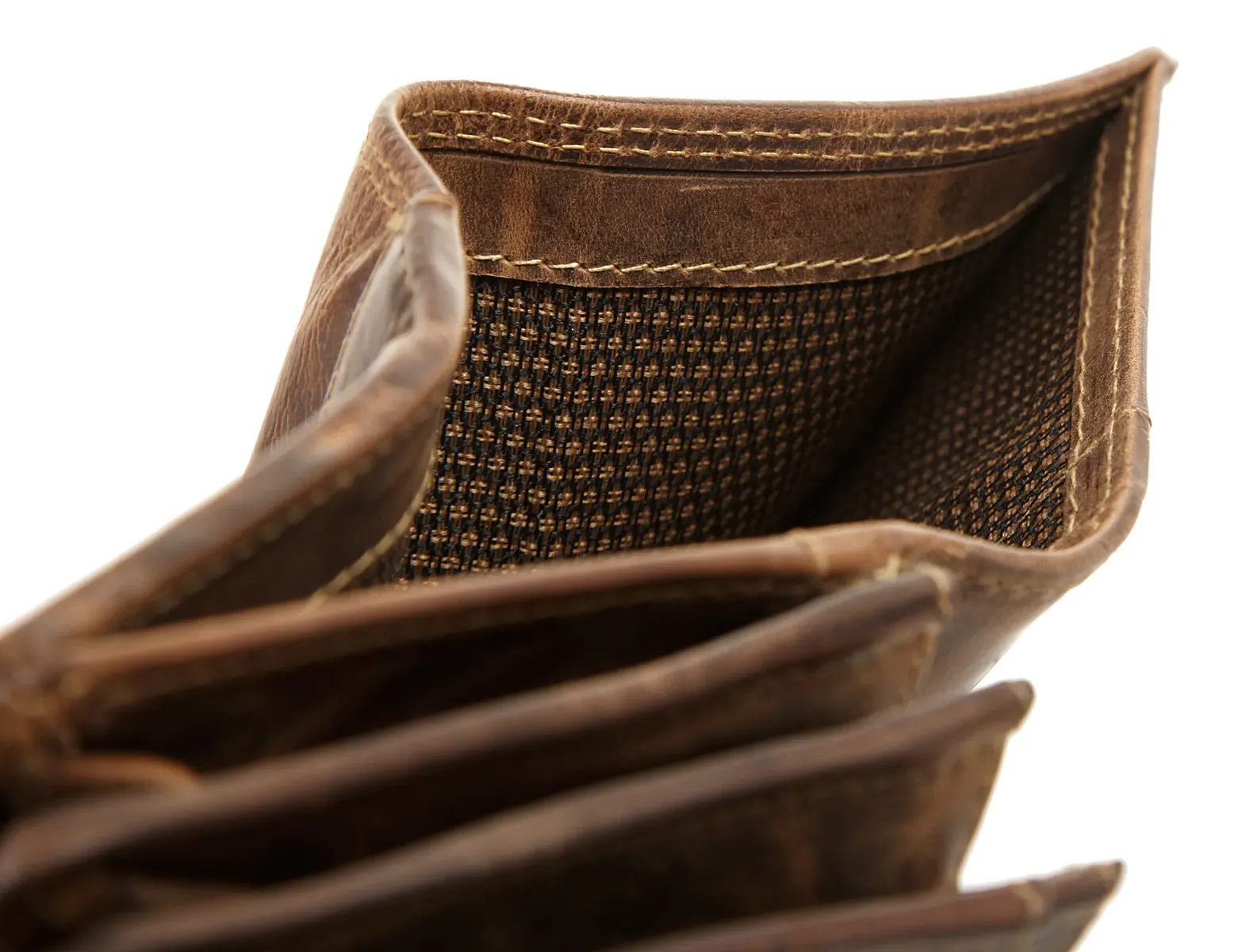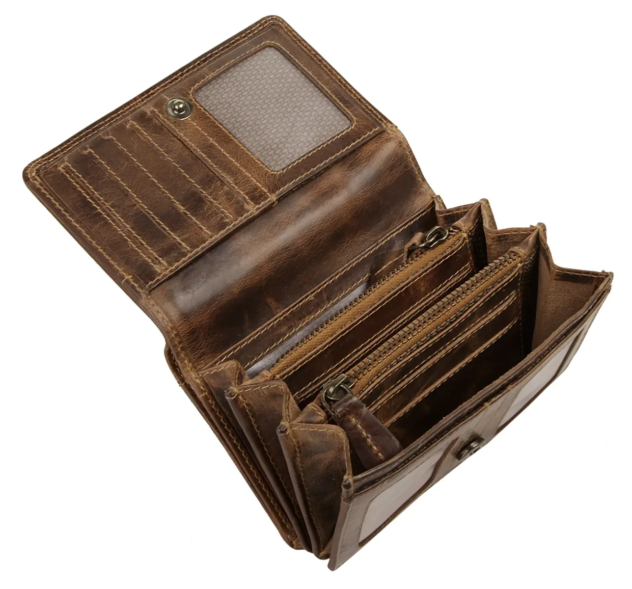 С этим индивидуальным кожаным кошельком в деревенском стиле от Bagan у вас всегда будет все компактно. С 14 отделениями для карт, отделением для купюр и просмотра, а также отделением для монет вы можете держать обзор. Особой особенностью является защита RFID, которая блокирует сканирование кредитных и дебетовых карт.* 100% натуральная кожа* 1 отделение для купюр* 1 отделение для монет на молнии* 9 отделений для карт* 4 видимых отделения* 1 прорезной карман* с RFID-защитой от несанкционированное использование данных при сканированииОсобенности: натуральная кожаДобавление названия: натуральная кожаШирина: 13 смВес: 200Высота: 9 смГлубина: 5 смКоличество внутренних карманов: 1Количество отделений для карт: 9Количество отделений для купюр: 1Количество видимых карманов: 4Внешний материал: 100% воловья кожаРазмер: один размерОсновная застежка: застежка-кнопкаВнутренний цвет: разноцветныйВнутренний материал: тканьВнутренний вид: с рисунком Вес: 0,2 кгОтделение для монет: да (молния)Вид Поверхность: винтажОбъем: 0,1Формат: альбомный формат