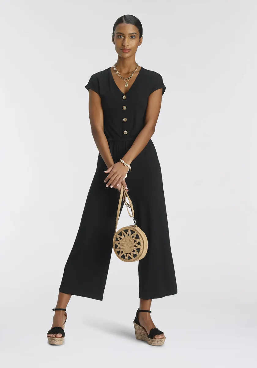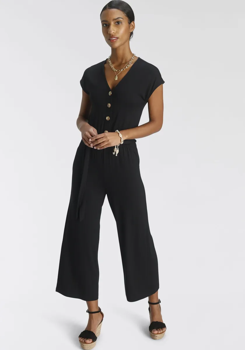 Комбинезон Tamaris-кюлот с планкой на пуговицах, черный