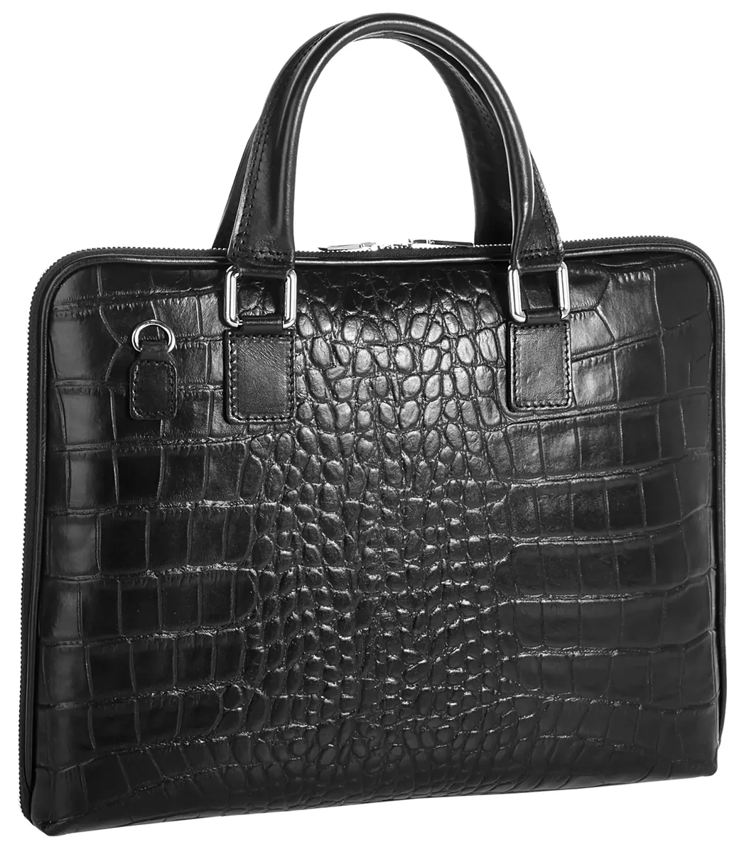 С этим красивым кожаным женским портфелем от Cluty бизнес становится явно женским делом. Тиснение под крокодила придает черной итальянской коже великолепный и очень элегантный вид. Кроме того, ваш кожаный женский портфель от Cluty имеет большое преимущество перед другими моделями: молния по всему периметру не только очень декоративна, но и чрезвычайно практична. Отличный компаньон!* Сделано в Италии* Изготовлено из высококачественной итальянской воловьей кожи* Кожа с тиснением под крокодила* Основное отделение, состоящее из двух частей, с молнией по всему периметру* Большое внутреннее отделение на молнии* Маленькое внутреннее отделение на молнии* Внутреннее отделение для мобильного телефона* 2 ручки для переноски * съемные, плавно регулируемые. Плечевой ременьРазмер выпуска: onesizeОсобенности: натуральная кожа, производство ИталияШирина: 30 смВес: 800Высота: 25 смГлубина: 5 смОбъем: 4 лТитульное дополнение: натуральная кожа, производство ИталияПапка А4: есть (макс. ширина 5 см) )Наружный материал: 100% воловья кожаДетали дна: неармированныеНижнее отделение: нетРазмер: один размер, подходит для ручной клади: даОсновная застежка: молнияВнутренний цвет: черныйВнутренний материал: синтетическое волокноВнутренний вид: соответствующий цветВнутренний карман: да (на молнии, несъемный) Вес: 0,8 кгОтделение для ноутбука: нетПоверхность оптики: структурированное тиснение, блестящаяПлечевой ремень: да (регулируемый)Отделение для смартфона: нетПлечевой ремень (длина в см): 71 см - 127 смФормат: квадратный Ручка для переноски: двойная ручка (фиксированная)Количество основных отделений: 1Закрытие основных отделений : на молнииЗаднее отделение: нет