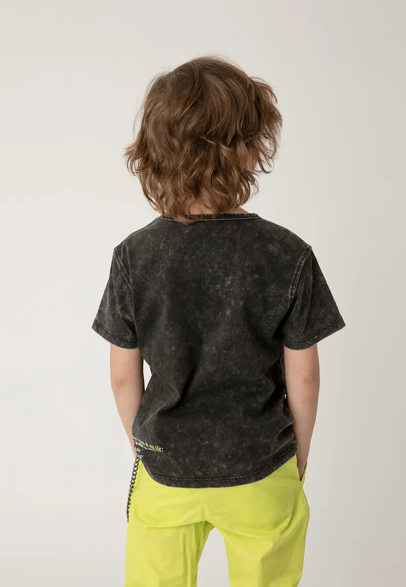 Эта футболка – идеальный предмет одежды для каждой маленькой рок-звезды. Передняя и задняя часть имеют очень четкий принт, крой повседневный и стильный, а подержанный вид завершает все это с точки зрения стиля. Абсолютный must have предстоящего лета