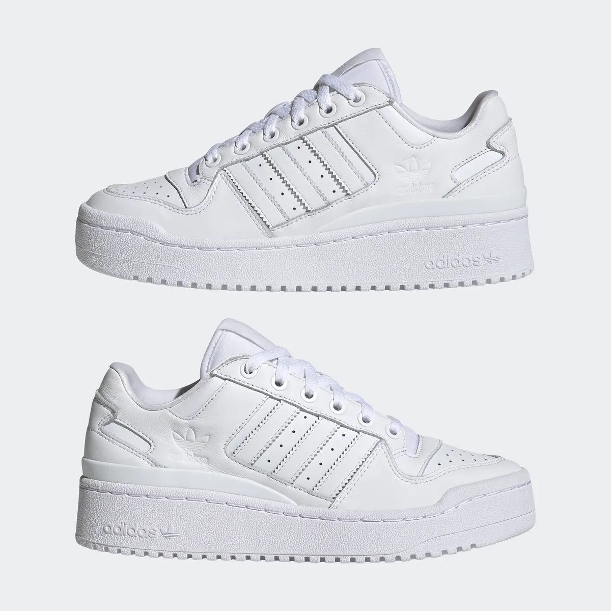 С этими кроссовками Adidas Forum Bold Stripes вы превзойдете себя. Эти кроссовки являются переизданием модели Forum 1984 года и сохраняют верность всем деталям, узорам и материалам оригинала. Очень большие элементы трилистника подчеркивают игривый вид, а массивная резиновая подошва на платформе придает стильный внешний вид.
