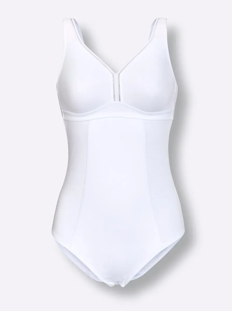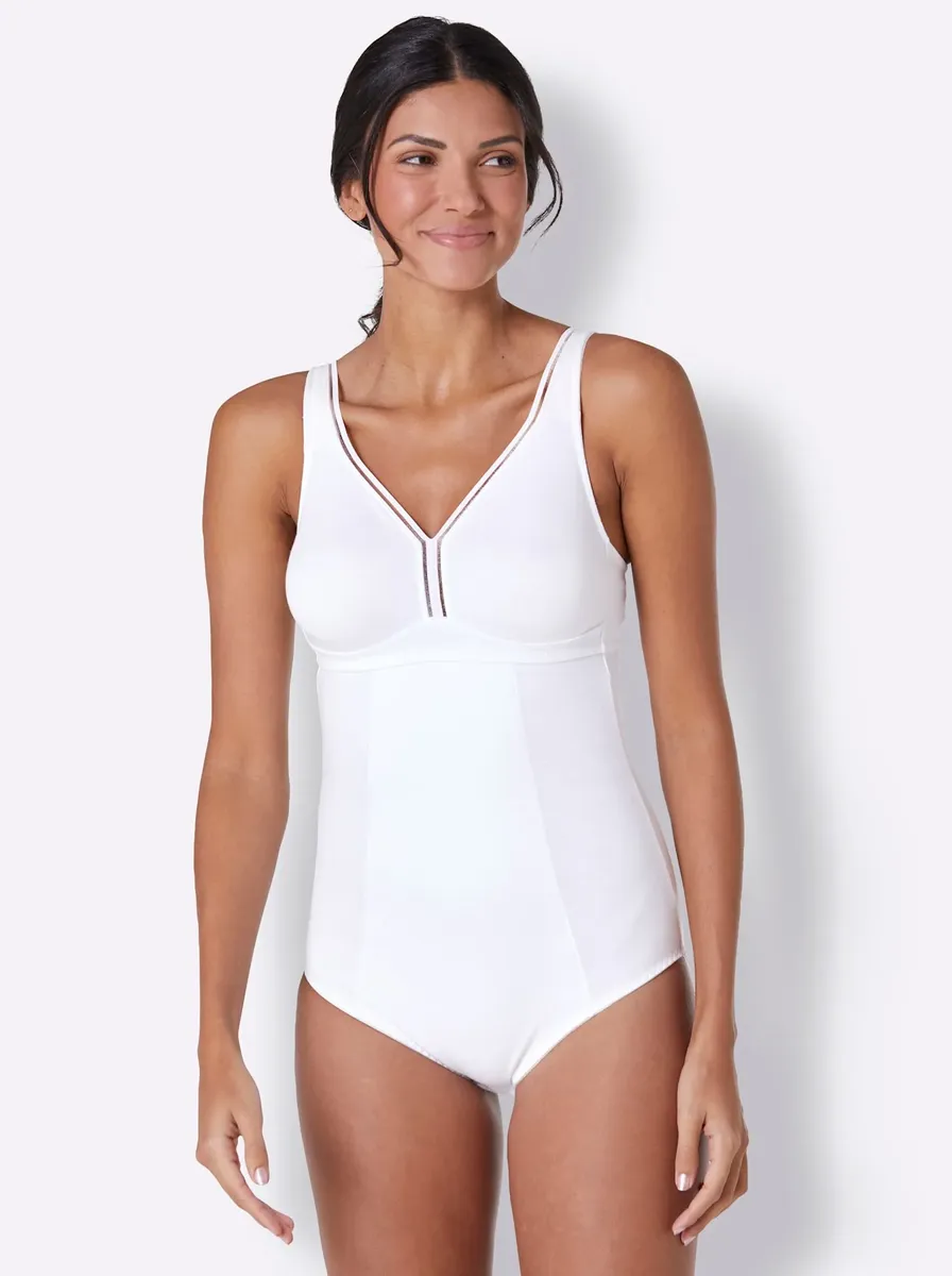 Мягко моделирующее тело без косточек из васпура. Формованные чашки декорированы нежной кружевной каймой по зоне декольте. Широкие мягкие лямки обеспечивают приятный комфорт и хорошую поддержку даже больших размеров. Очень приятен для кожи благодаря мягкому содержанию хлопка. С застежкой на крючок. 60% полиэстер, 40% хлопок.