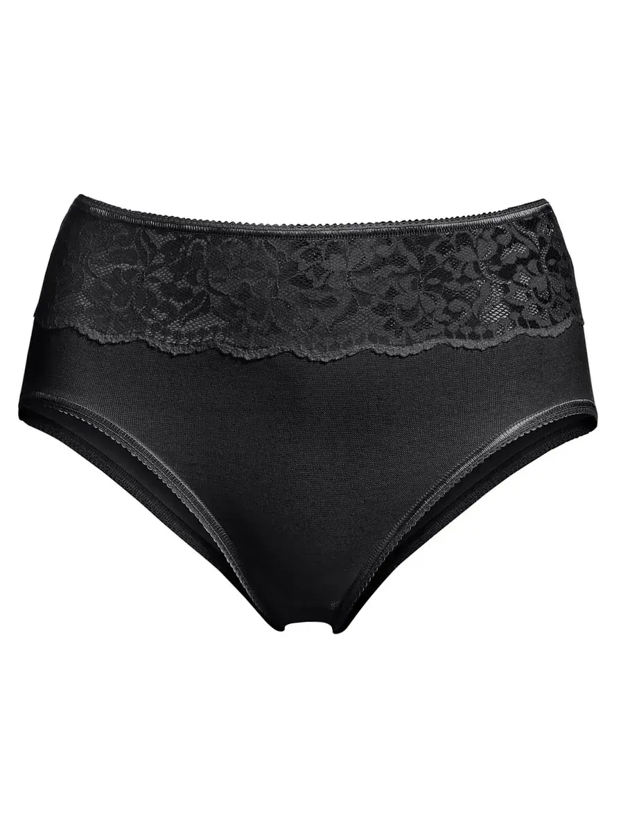 Трусики из уошпура с пришитым эластичным поясом, элегантной эластичной кружевной вставкой спереди и эластичными вырезами на штанинах. Двойная ластовица. Тонкое ребро. 95% хлопок, 5% эластан.