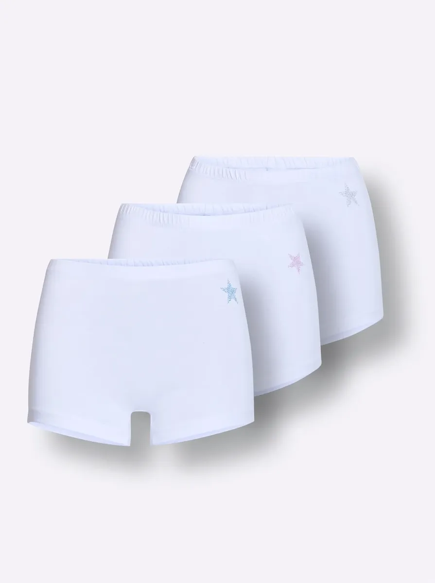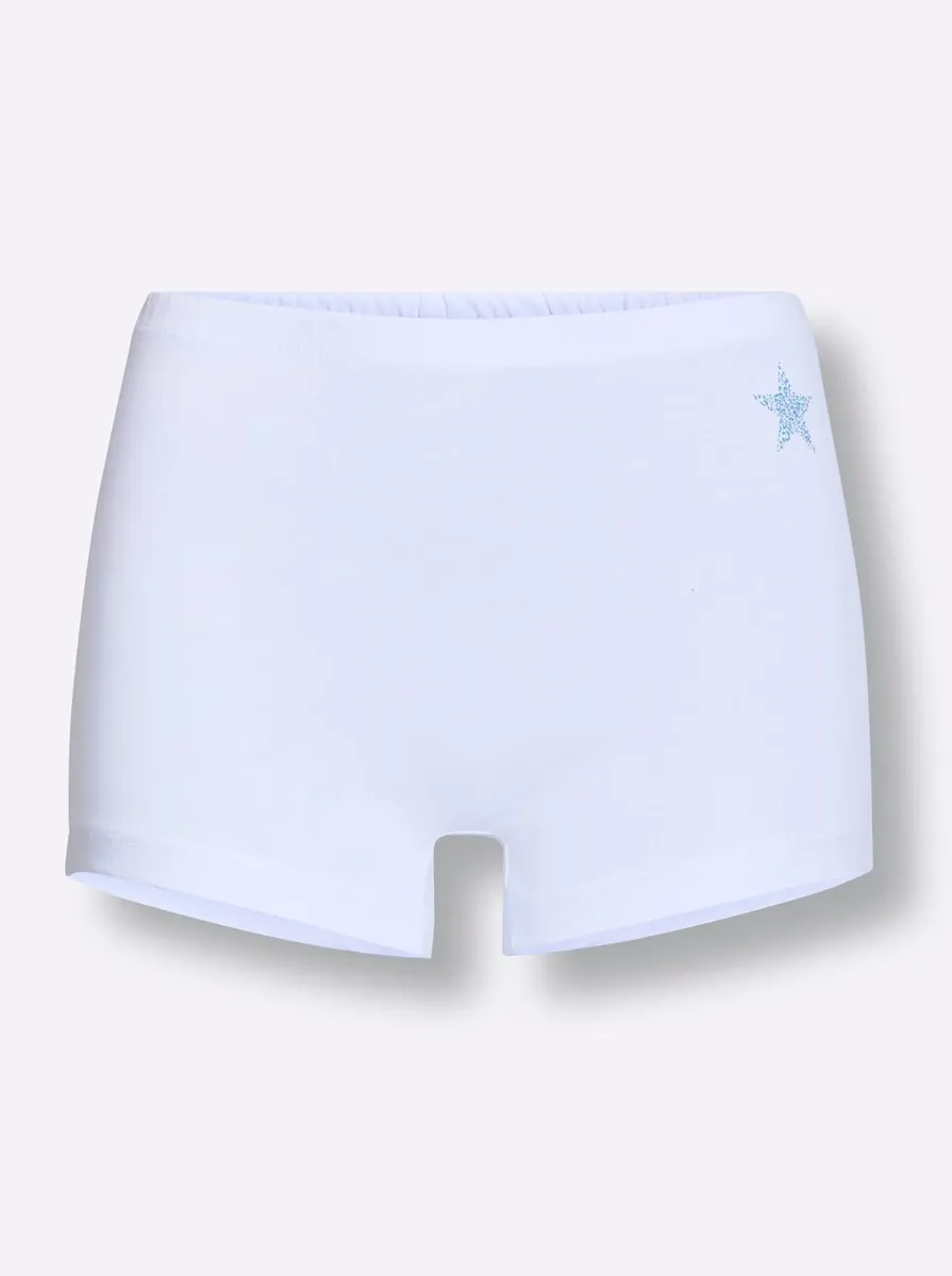 Трусики от waschpur в недорогой упаковке из 3-х штук. С узким эластичным поясом и удобными манжетами на ногах. Боковой звездный принт спереди великолепен. Поддержите инициативу «Хлопок, сделанный в Африке». 95% хлопок, 5% эластан.