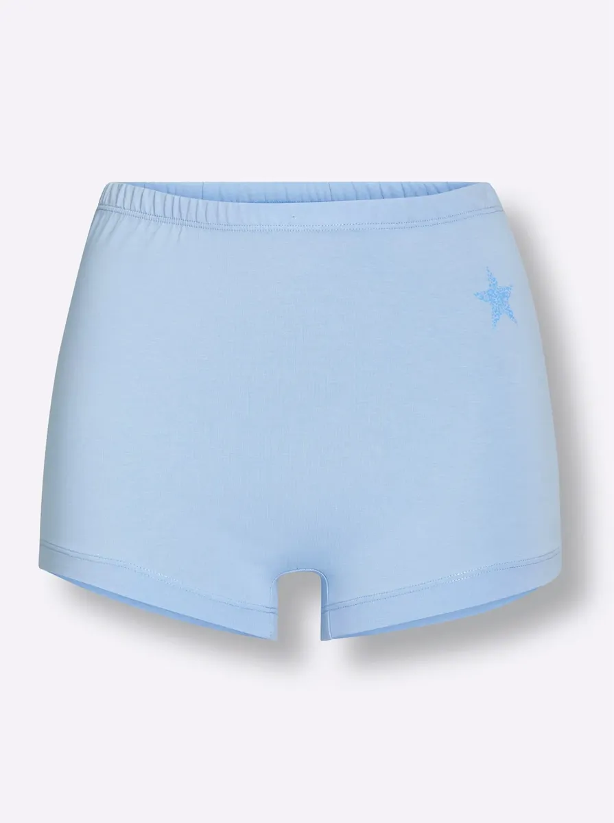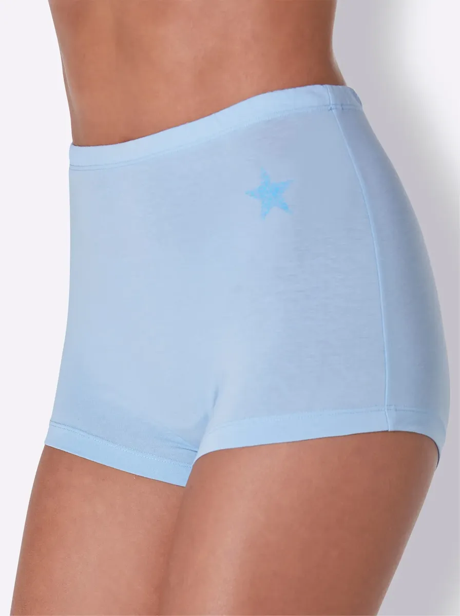 Трусики от waschpur в недорогой упаковке из 3-х штук. С узким эластичным поясом и удобными манжетами на ногах. Боковой звездный принт спереди великолепен. Поддержите инициативу «Хлопок, сделанный в Африке». 95% хлопок, 5% эластан.