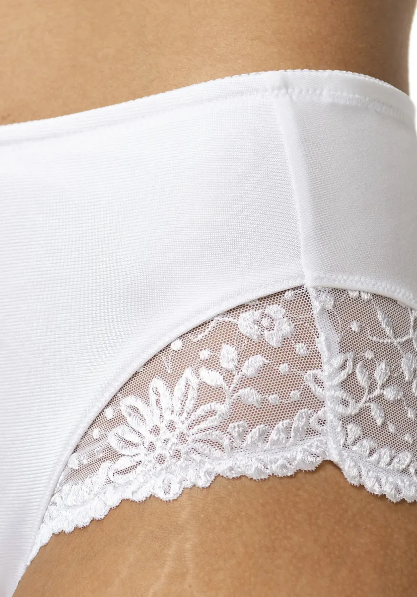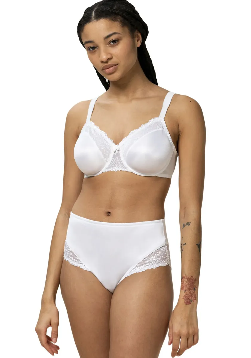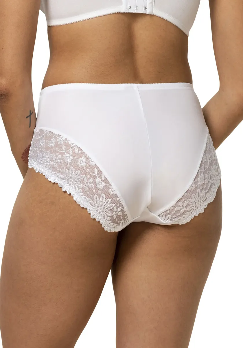 Высокие трусы из серии Ladyform Soft. элегантный, неподвластный времени крой с кружевной аппликацией Популярные кружевные детали на 75 % изготовлены из переработанного материала и обрабатываются в Германии. Этот продукт был протестирован на наличие вредных веществ и сертифицирован в соответствии со стандартом OEKO-TEX STANDARD 100, 22.0.22419 Hohenstein HTTI. Доступно с подходящим бюстгальтером из той же серии.