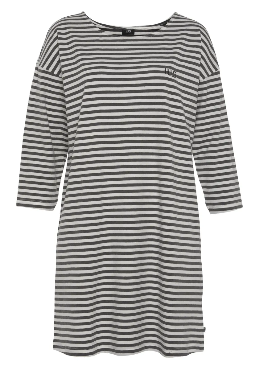 Короткая ночная рубашка с полосками, окрашенными в пряжу.
