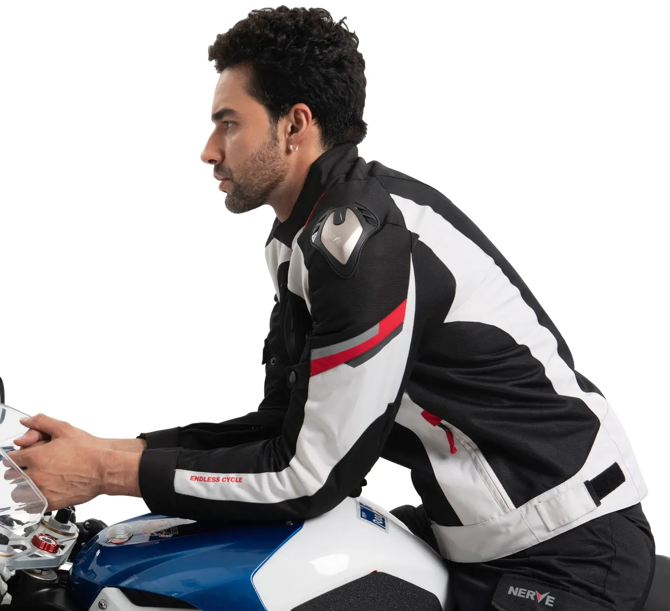 Внешняя поверхность из устойчивого к истиранию и разрыву полиэстера, интегрированного с полиэфирной сеткой; Подкладка на спине протекторы на плечах и локтях; Усиления из твердой оболочки в зонах риска падения Сетчатые вставки на спине, груди и руках для оптимальной вентиляции; Светоотражающие элементы Gleamlite Высокий комфорт при ношении, 3 внешних кармана для удобного хранения; Соединение молнии с брюками. Летняя мотокуртка из текстиля с протекторами; идеален для жарких дней