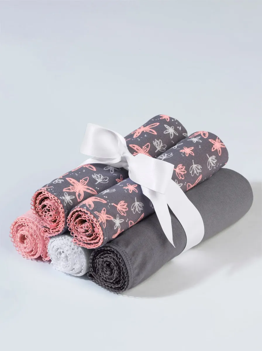 Трусы-боксеры в упаковке 5 штук по привлекательной цене! 3 обычных и 2 печатных. С атласным бантом и декоративной отделкой на эластичном поясе. Удобные эластичные манжеты на ногах. Двойная ластовица. В удобном трикотажном исполнении. 95% хлопок, 5% эластан.