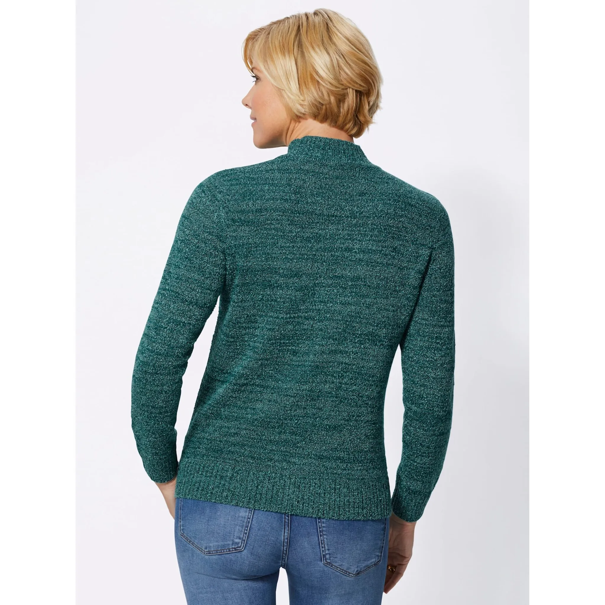 Популярное качество букле делает свитер удобным в носке и простым в уходе. С ребристой отделкой на воротнике-стойке, манжетах и ​​подоле. Полностью тщательно связан по форме. 77% полиакрил, 23% полиэстер. Машинная стирка.