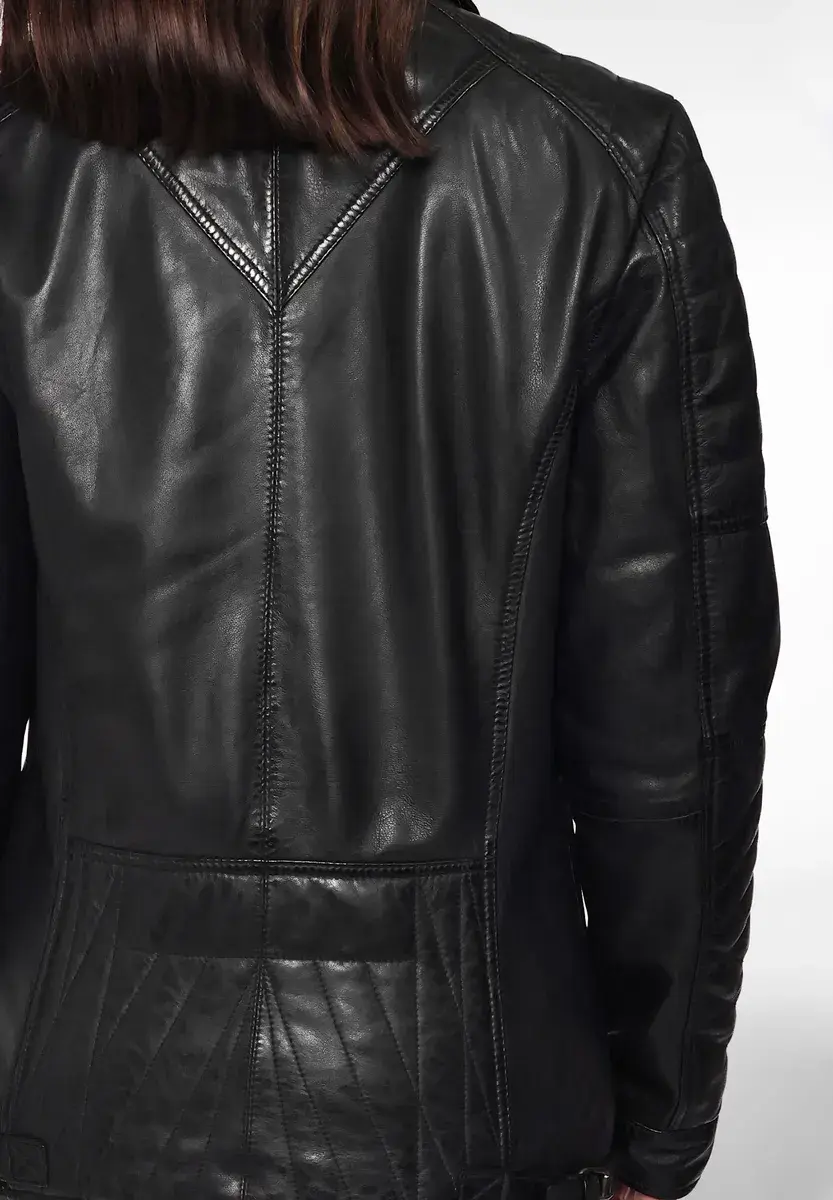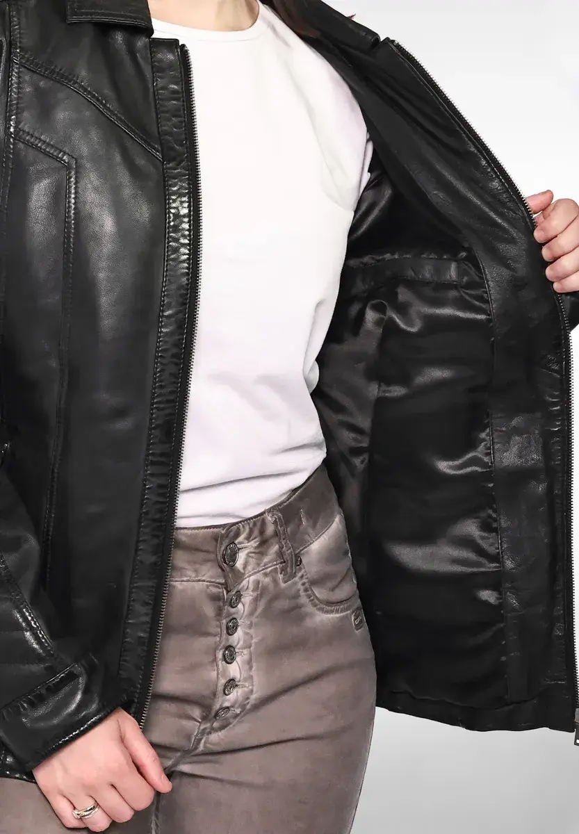 Тщательно продуманные детали, такие как элегантный воротник рубашки, красивая перфорация на плечах, декоративные швы на плечах, рукавах и спине, делают эту куртку привлекательной. Куртка застегивается на прямую молнию и может регулироваться с помощью двух регулируемых кожаных ремней по бокам. Боковые карманы обеспечивают приятный комфорт. Легкая подкладка делает куртку идеальной для холодного сезона.Вырез: нетОсобенности: нетОтбеливание: Не отбеливатьСтрана-производитель: ПакистанПроизводитель: JCCКоллекция: Весна/Лето 18Форма воротника: Рубашечный воротникМатериал подкладки: 65% полиэстер, 35% хлопокМатериал подкладки (двойной) снято): материал из синтетического волокна. Внешний материал: гладкая кожаПримечание к материалу: нет/не актуально. Состав материала: Материал верха: 100 % кожа, ягненок/подкладка: 65 % полиэстер; 35% хлопок / подкладка рукавов: 100% полиэстерВыкройка: однотоннаяПосадка: индивидуальная Инструкция по уходу: специальная чистка кожиТип/стиль изделия: куртка Тип изделия: кожаная куртка Длина по спине: xx см. у Гр. XСезон: осень-зимаПодол: прямой Тип застежки: молнияНабивка: нет/не актуальноЦелевая группа: женщиныДлина рукава: длинный рукавФильм рукава: нет/не актуальноДлина: нормальная