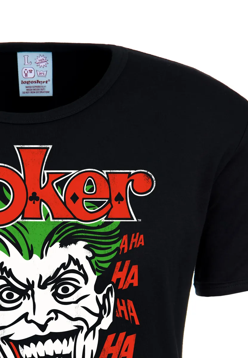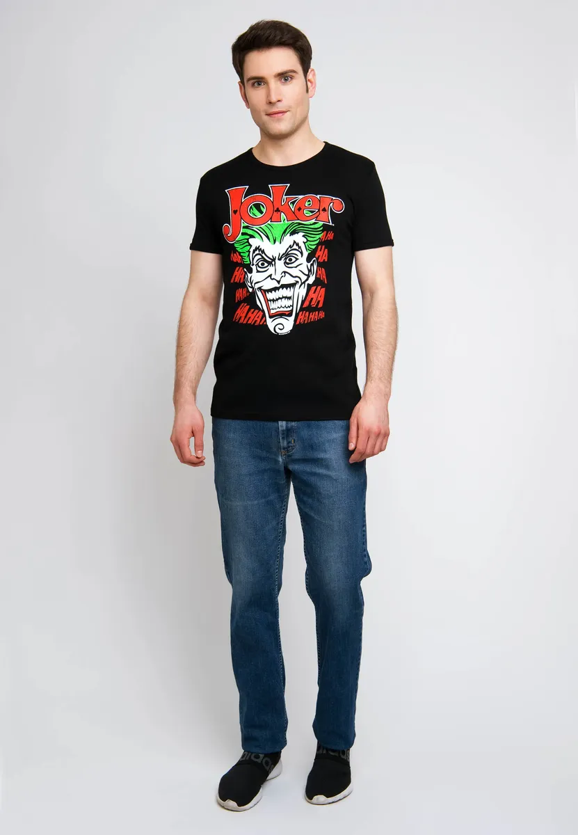На футболке «Джокер» от Logoshirt черного цвета изображен всемирно известный злодей Бэтмена Джокер в винтажном стиле. Футболка узкого кроя — настоящий must-have для фанатов DC Comics. Благодаря качественной трафаретной печати в стиле ретро модель выглядит как оригинал из 60-х годов. Благодаря предварительной усадке рубашка приталенного кроя сохраняет форму даже после нескольких стирок. Футболка с принтом Джокер изготовлена ​​из 100% хлопка. Это материал особо высокого качества (230 г/м2). Бренд Logoshirt – это аутентичный дизайн, высокое качество и оригинальность. Используются только лицензионные оригинальные разработки.