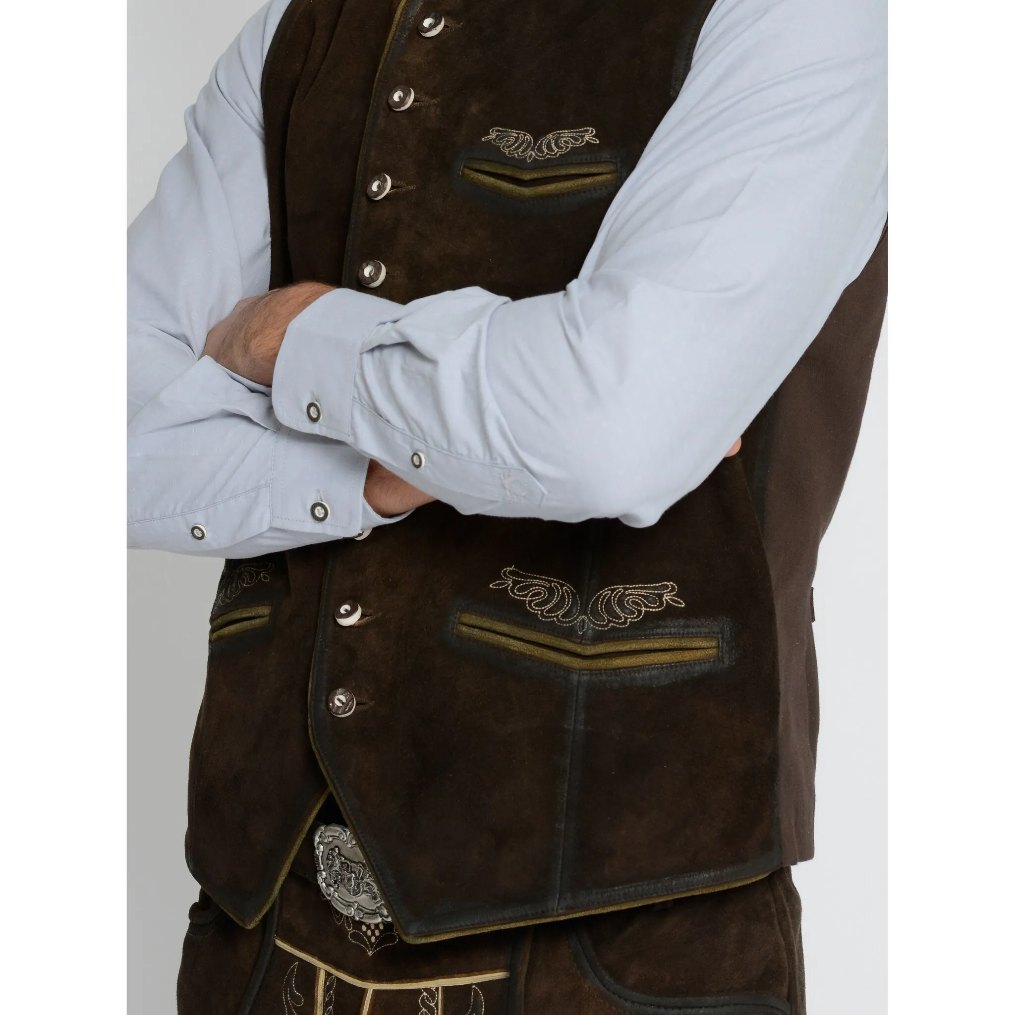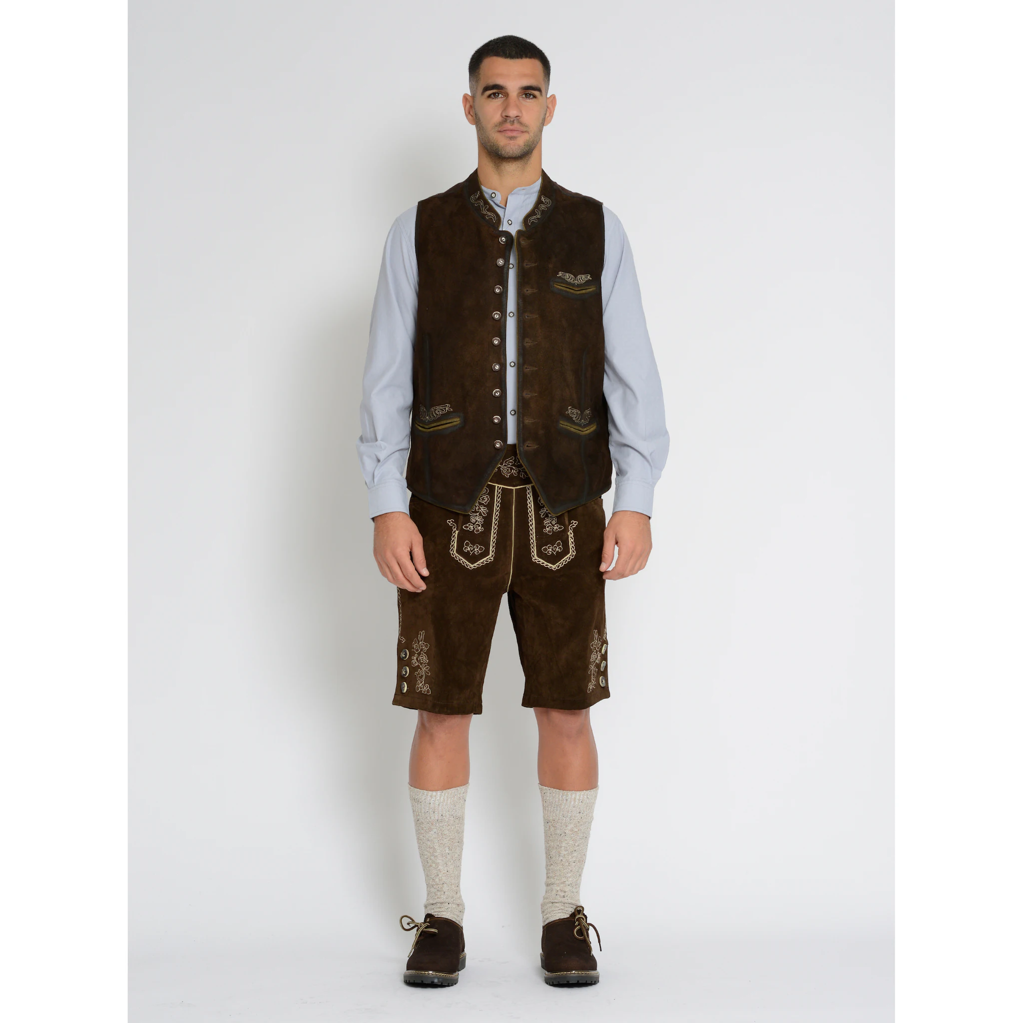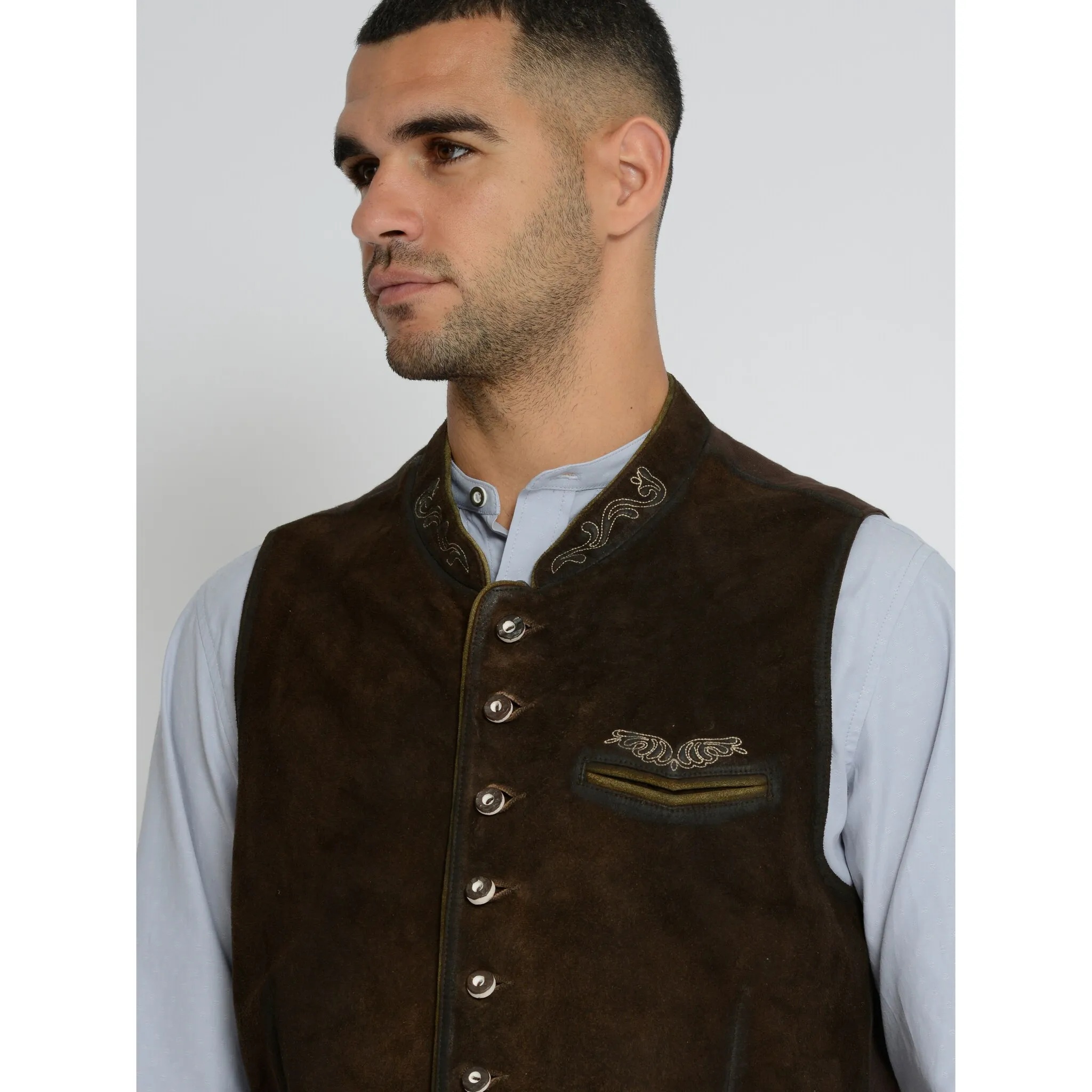Состав материала: Материал верха: 50% козья замша, 50% хлопок; Подкладка: 100% полиэстерПодкладка: на легкой подкладкеСтрана-производитель: Индия Форма воротника: стандартнаяМатериал подкладки (двойная снимается): 100% полиэстерМатериал внешней ткани: 50% козий велюр, 50% хлопокПосадка: стандартная Инструкция по уходу: кожа специальной чисткиТип/стиль изделия: жилет традиционныйТип застежки : планка с пуговицамиЦелевая группа: мужчиныДлина рукава: без рукавов