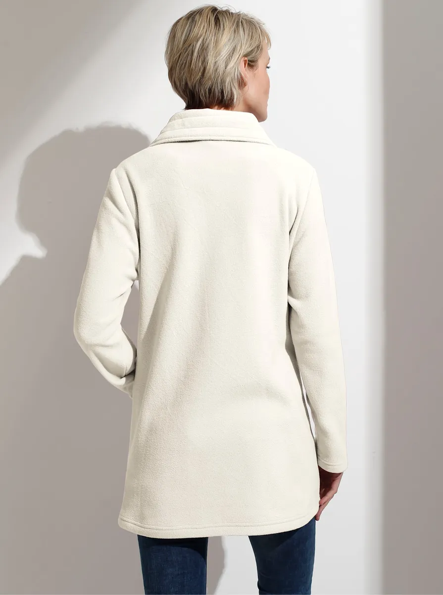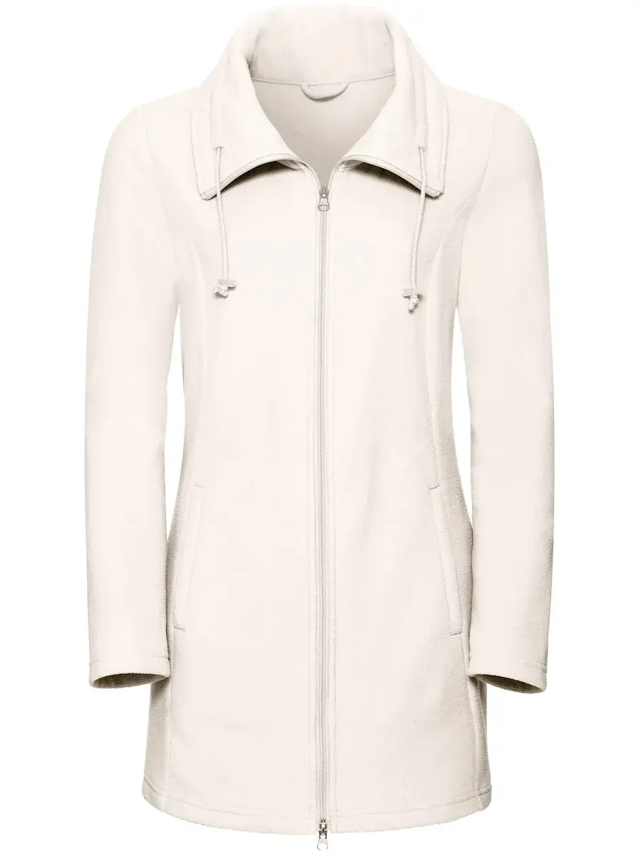 Удлиненная флисовая куртка согреет вас в прохладные дни! Отложной воротник с регулируемым шнурком, практичная двусторонняя молния и 2 врезных кармана. Формируем венские швы. Антипиллинговое оборудование. 100% полиэстер. Машинная стирка.