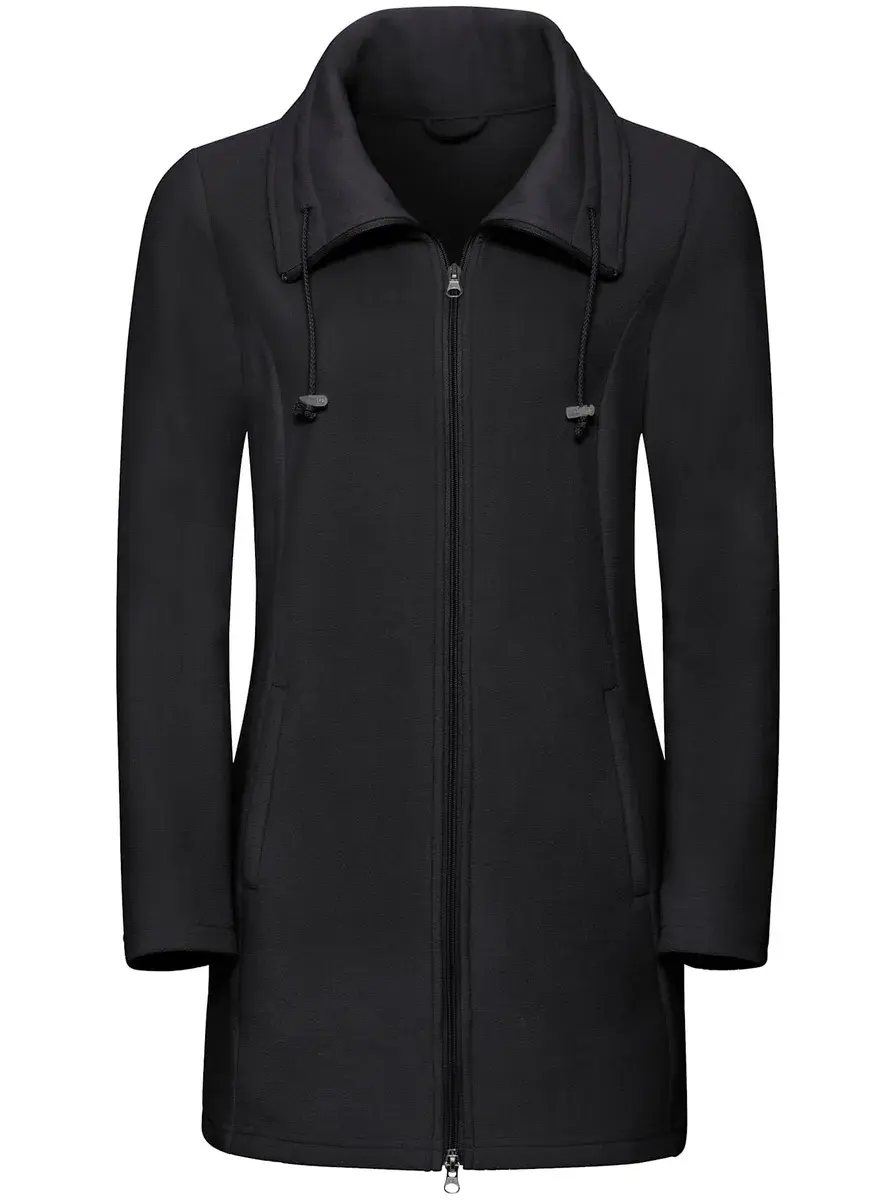 Удлиненная флисовая куртка согреет вас в прохладные дни! Отложной воротник с регулируемым шнурком, практичная двусторонняя молния и 2 врезных кармана. Формируем венские швы. Антипиллинговое оборудование. 100% полиэстер. Машинная стирка.