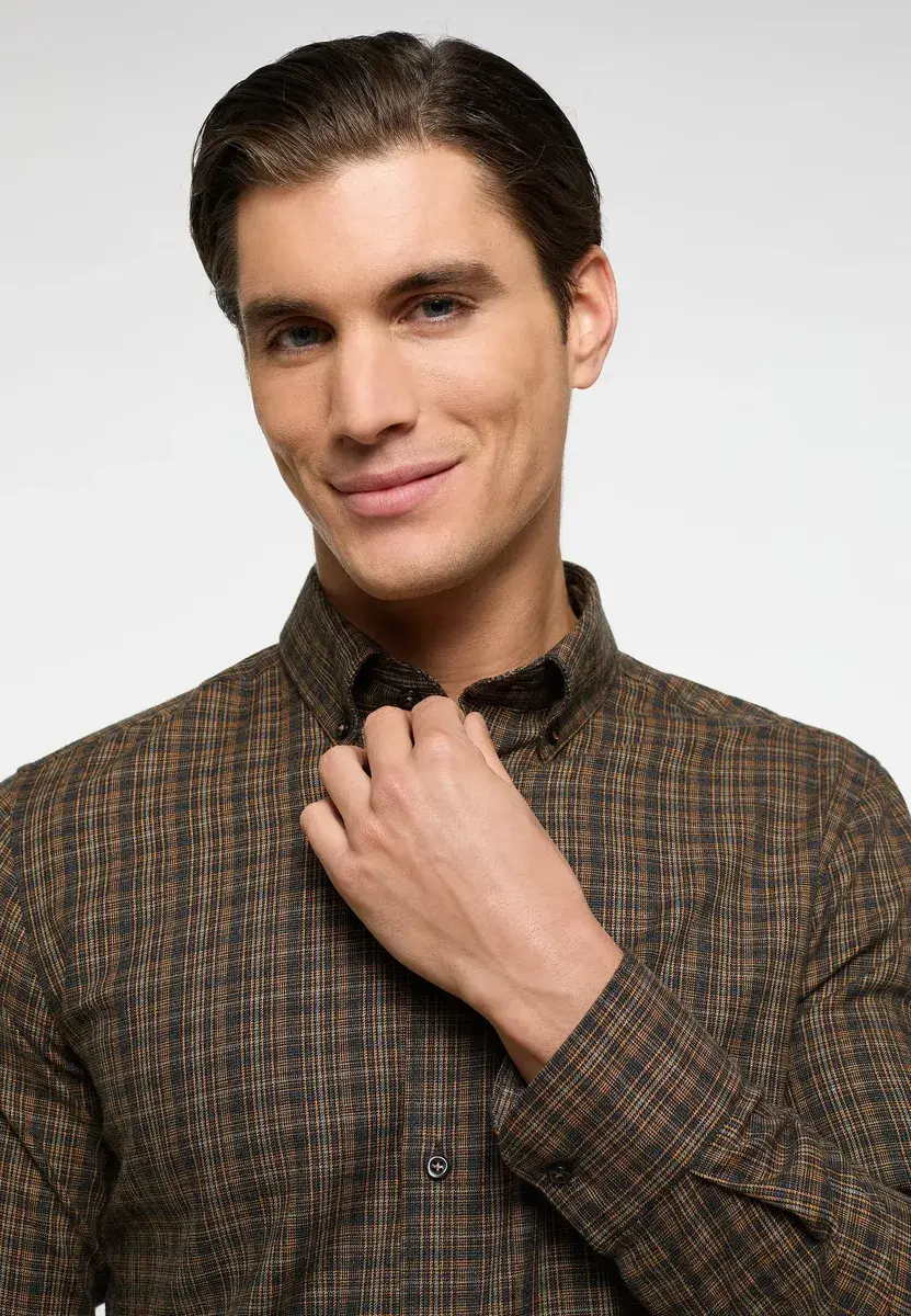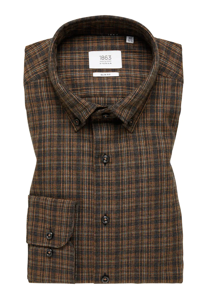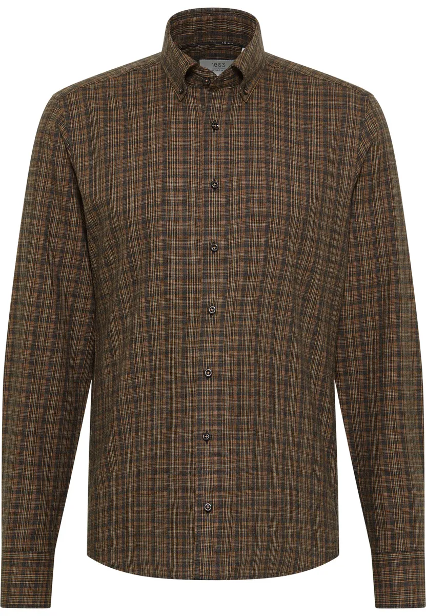 Почувствуйте и испытайте наше «Супермягкое качество»!Особые качества, хлопчатобумажные ткани с лучшей отделкой, высокое качество изготовления - все эти преимущества объединены в нашей премиальной линии «1863 by ETERNA».Все рубашки нашего премиум-класса линии отличаются высоким качеством изготовления, чрезвычайно удобны в ношении. Эта клетчатая фланелевая рубашка с длинными рукавами изготовлена ​​из 52% хлопка, 38% лиоцелла и 10% натуральной шерсти и отвечает самым высоким требованиям к мягкости и максимальному комфорту при ношении. Рубашка (без нагрудного кармана) с модной мини-пуговицей. Особенно здесь должен быть пуховый воротник и облегающий крой. Используется там, где совпадают требования к современным деловым рубашкам и роскоши для повседневной жизни. Рубашка мягкого покроя имеет мягкий воротник и манжеты, а также неклееные вставки. Имеет также укороченный вариант. длины тела, чтобы ее можно было носить на поясе оптимальной длины - для создания удивительно спокойного и высококачественного образа. Чего вы ждете, закажите эту особенно мягкую мужскую рубашку в клетку сегодня и убедитесь в этом в первую очередь. Классное качество и качество изготовления нашей продукции.
