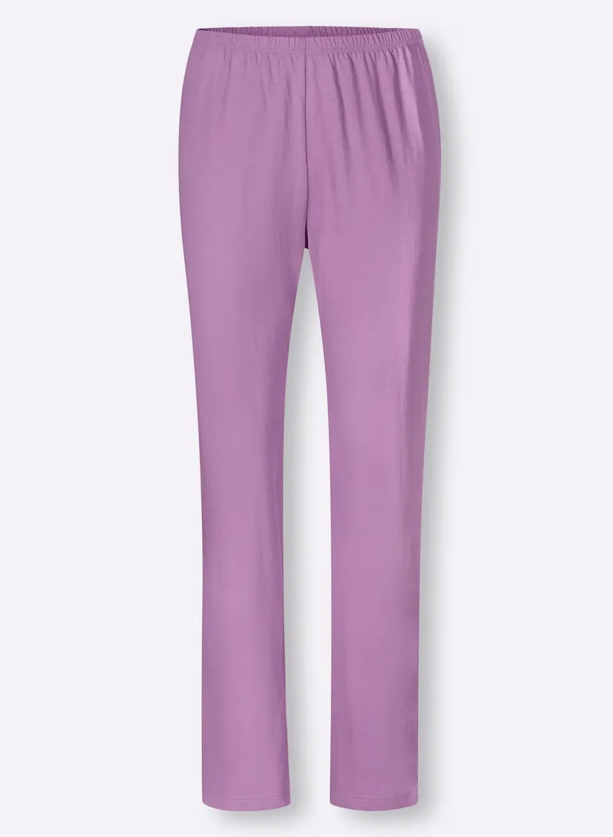 Удобная пижама от Waschpur. Топ с принтом и V-образным вырезом по канту. Однотонные брюки с эластичным поясом по всему периметру.