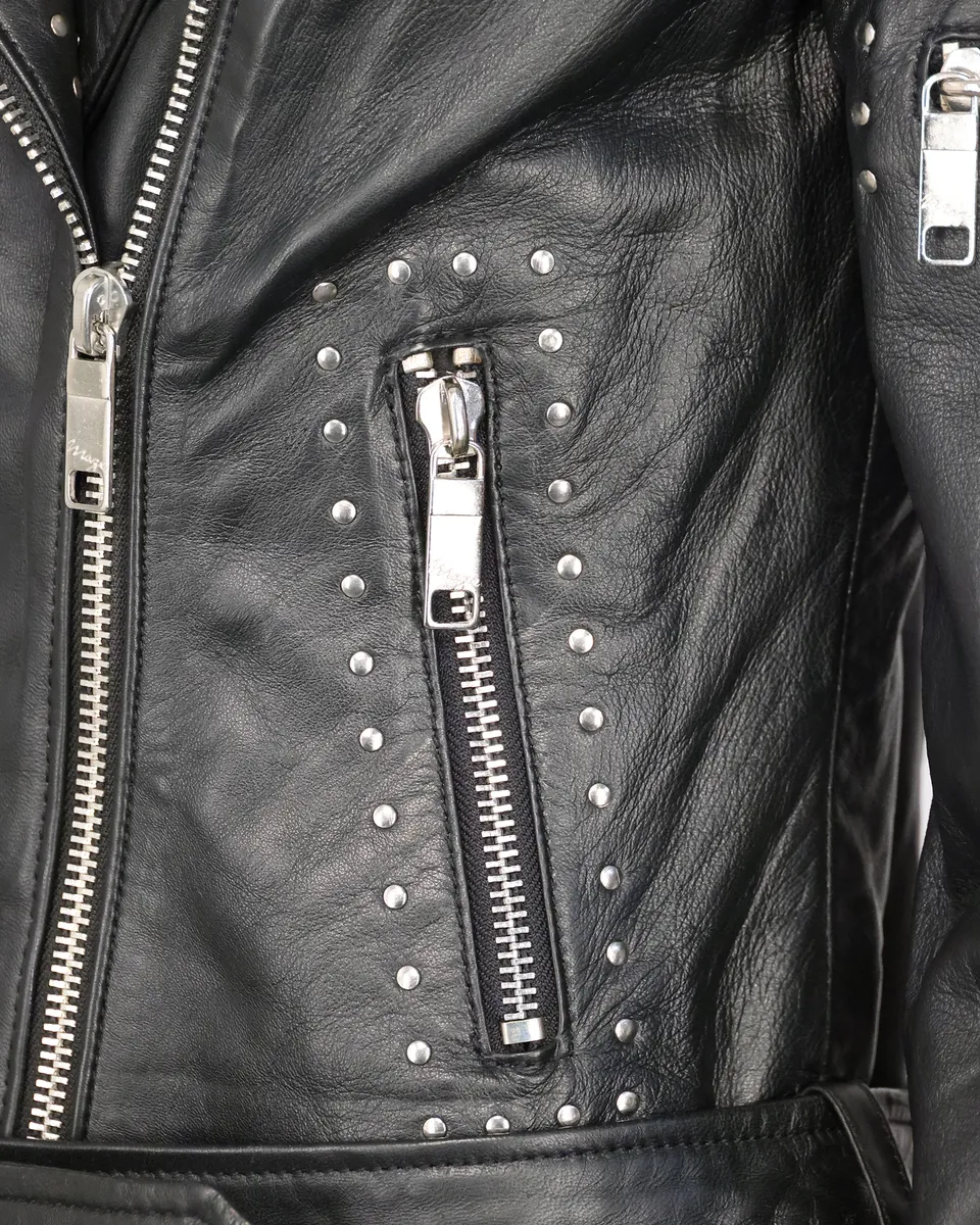 Сочетание высококачественной кожи и уникального дизайна делает эту кожаную куртку модного бренда Maze уникальной кожаной курткой. Благодаря высокому качеству материала вы можете рассчитывать на долгосрочную куртку, которая всегда будет показывать вас с лучшей стороны. Изюминкой этой куртки являются многочисленные декоративные заклепки. Случай: Вечеринка/Вечерняя одеждаБазовая модель: НетПодкладка: Легкая подкладкаКлассификация размеров: альфа (внутренний размер, XS...)Размерный диапазон: Нормальные размерыСтрана происхождения: Пакистан (ПК)Фильм куртки: Кожаная курткаКоллекция: Весна/Лето 22Воротник/Вырез: Кентовый воротникМатериал подкладки: 100% хлопокМатериал внешней ткани: 100% овчина (гладкая кожа)Материал набивки: без набивкиМатериал подкладки рукавов: 100% полиэстерСвойства материала: овчина (гладкая кожа)Состав материала: Внешний материал Состав: 100% кожа ягненка / внутренняя подкладка: 100% хлопок / подкладка рукавов: 100% полиэстер Детали верха: не указаноПосадка: Нормальная посадкаТип/стиль изделия: Кожаная курткаПокрой: ОбычныйСпециальные размеры Уровень продукта: не указаноСтиль: Байкерская курткаТип застежки: МолнияДлина спины: прибл. см по размеру. С