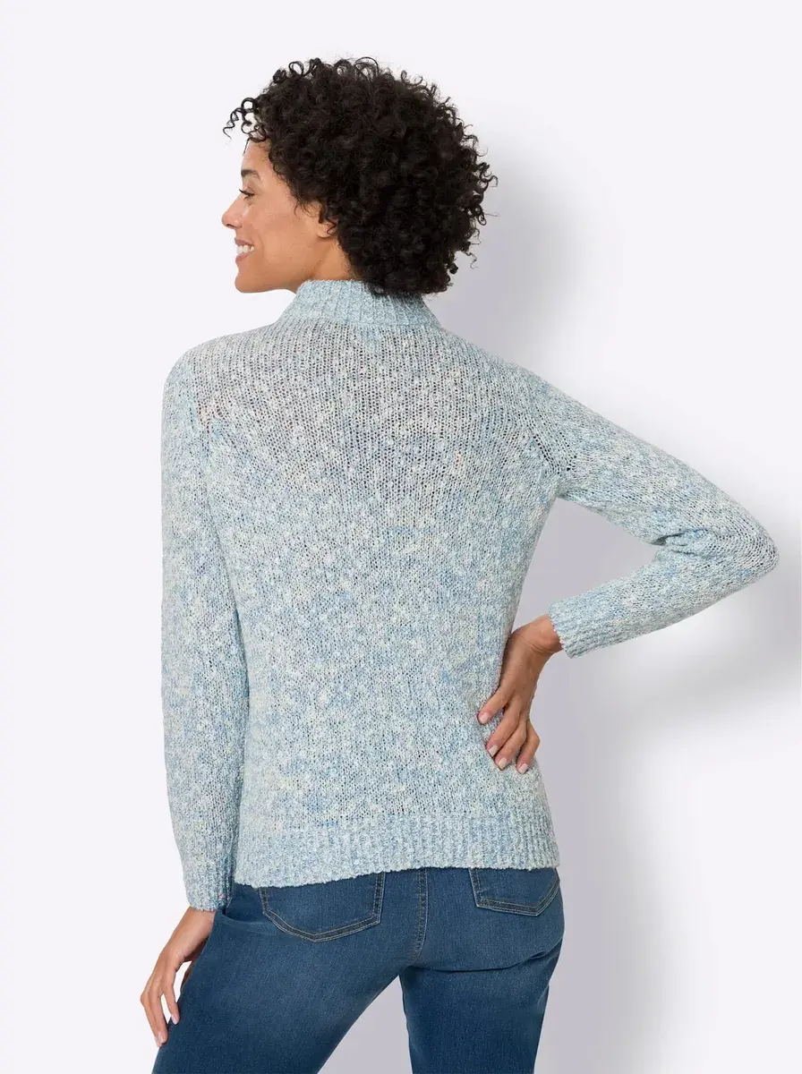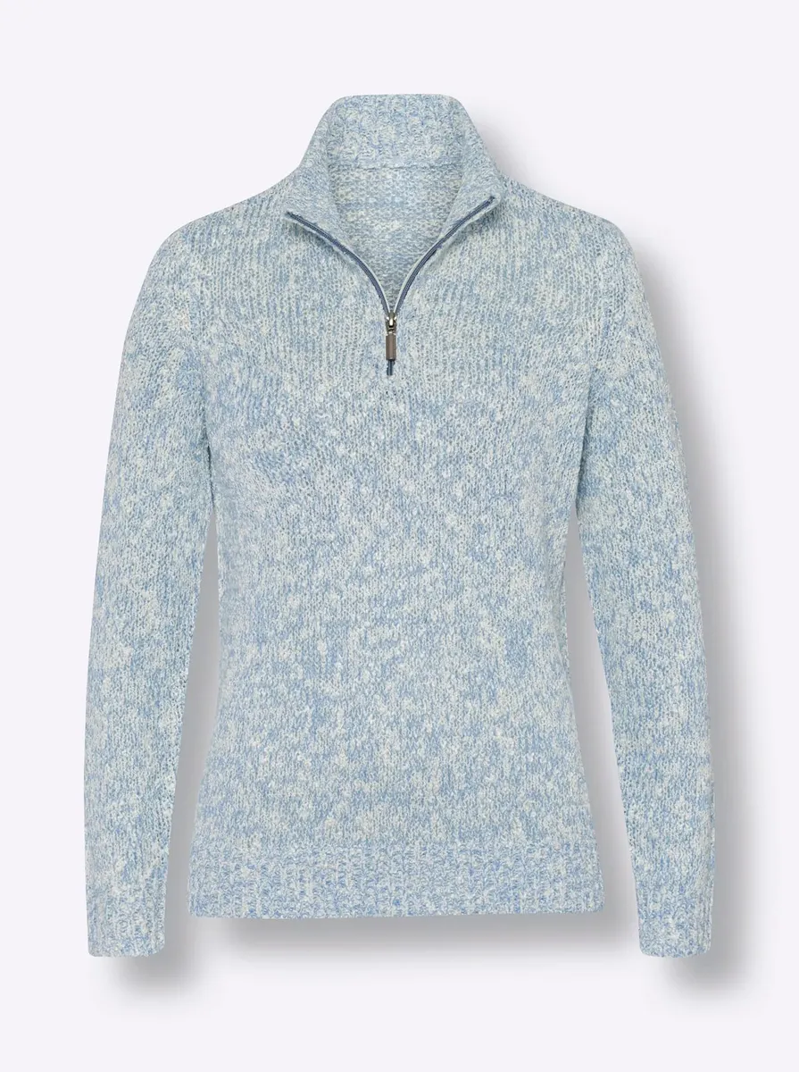 Надежный партнер в моде: свитер из пряжи с эффектным эффектом! Красивое изделие с воротником-стойкой и практичной молнией. Ребристые манжеты и подол. 100% полиакрил. Машинная стирка.