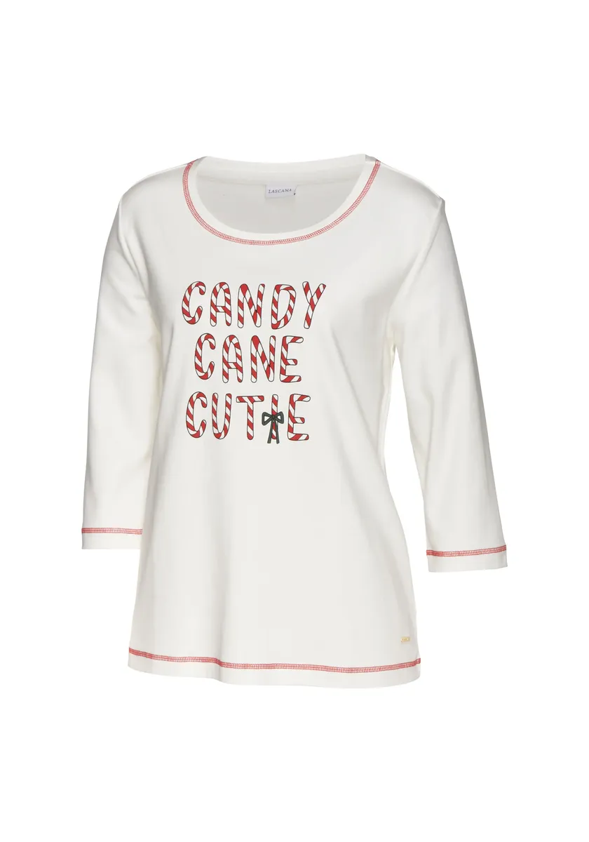 Пижамный топ LASCANA с надписью, цвет Ecru