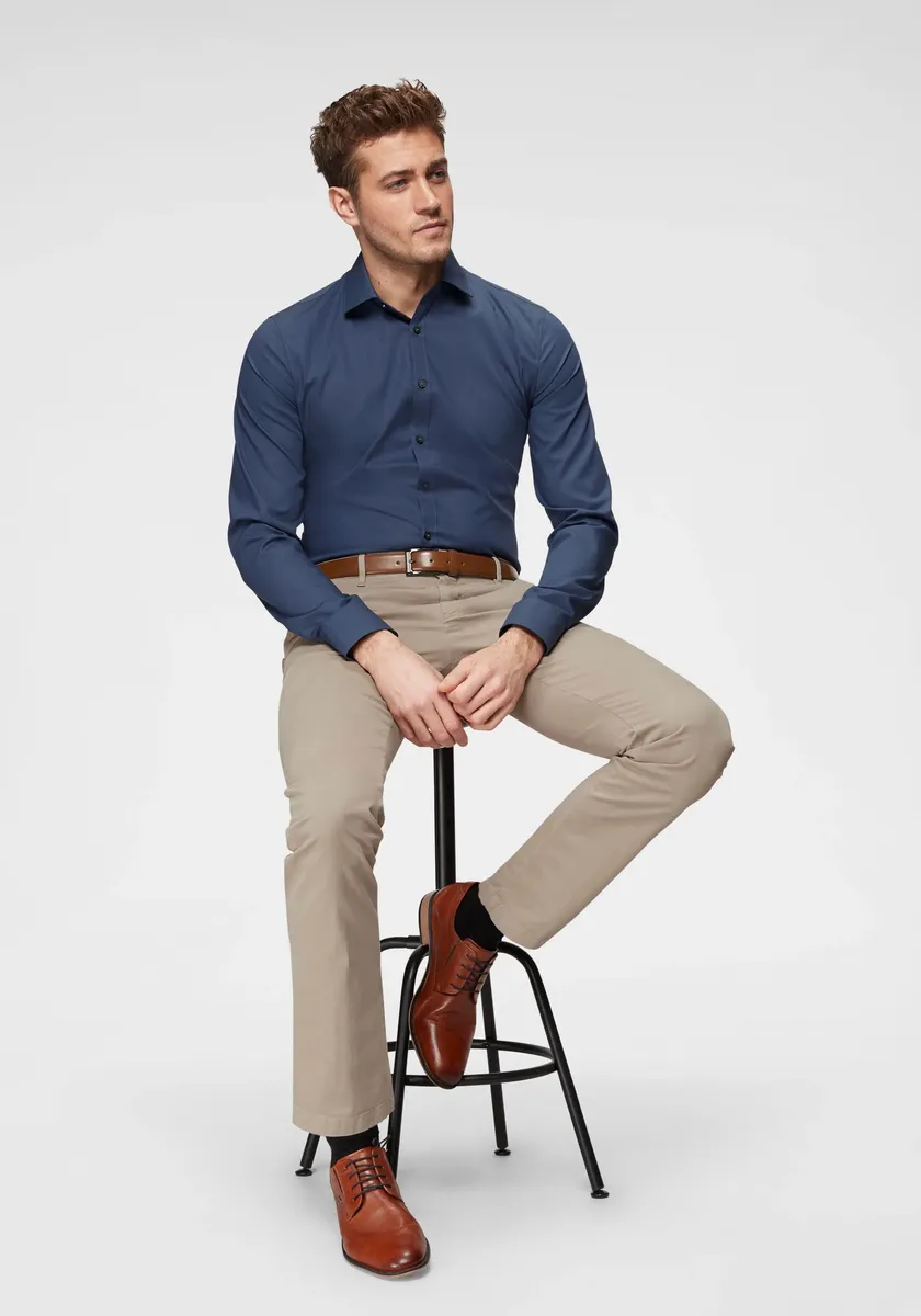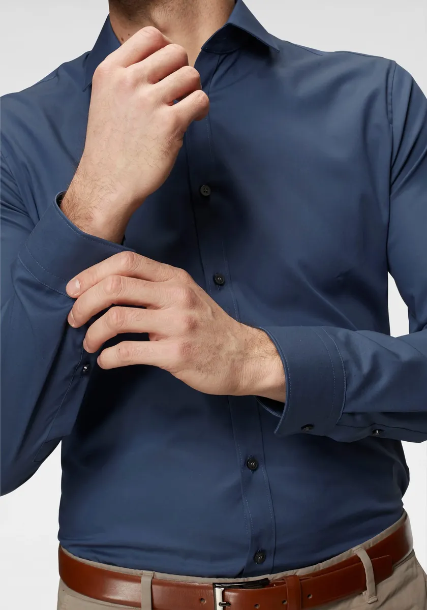 Идеально подходит для профессионального использования: классическая рубашка с длинными рукавами очень узкого кроя. Качественный состав материала: 97% хлопок, 3% эластольфин для приятного ощущения на коже. Легко ухаживать и легко гладить: идеально подходит для напряженной повседневной деловой жизни. Высокий комфорт при ношении благодаря эластичному материалу: оптимально адаптируется к вашим движениям. Классический воротник «Кент» и планка с пуговицами во всю длину: вневременные и универсальные.