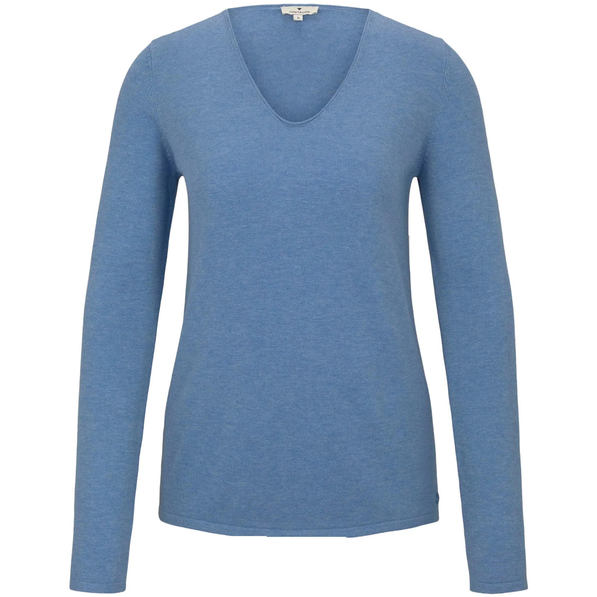 Свитер TOM TAILOR с V-образным вырезом из тонкой вязки, синий
