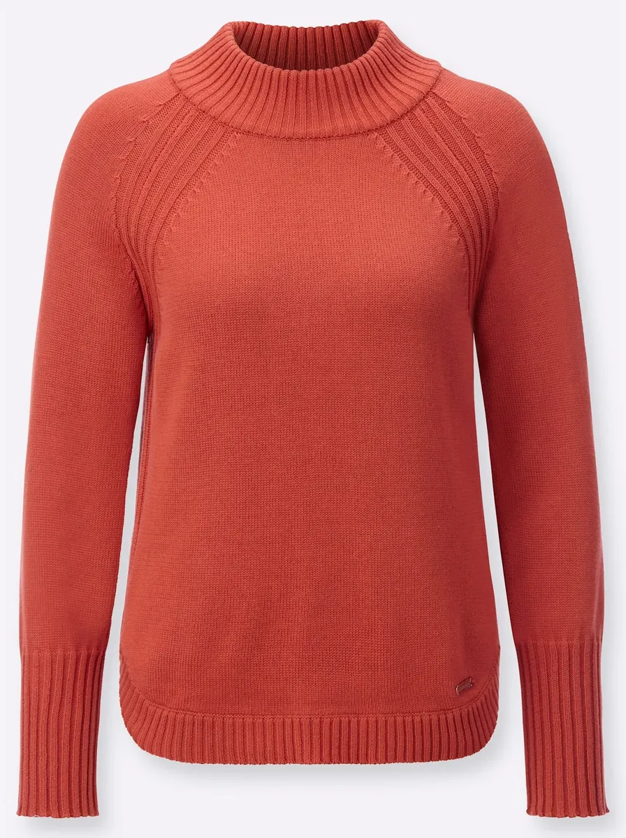 Свитер искусной вязки с двойным воротником-стойкой в ​​рубчик. Привлекательный ребристый узор по бокам, длинные рукава реглан и закругленный низ с разрезами по бокам. Мягкая смесь хлопка, качество одинарного джерси. Поддержите инициативу «Хлопок, сделанный в Африке». 50% хлопок, 50% полиакрил. Машинная стирка.